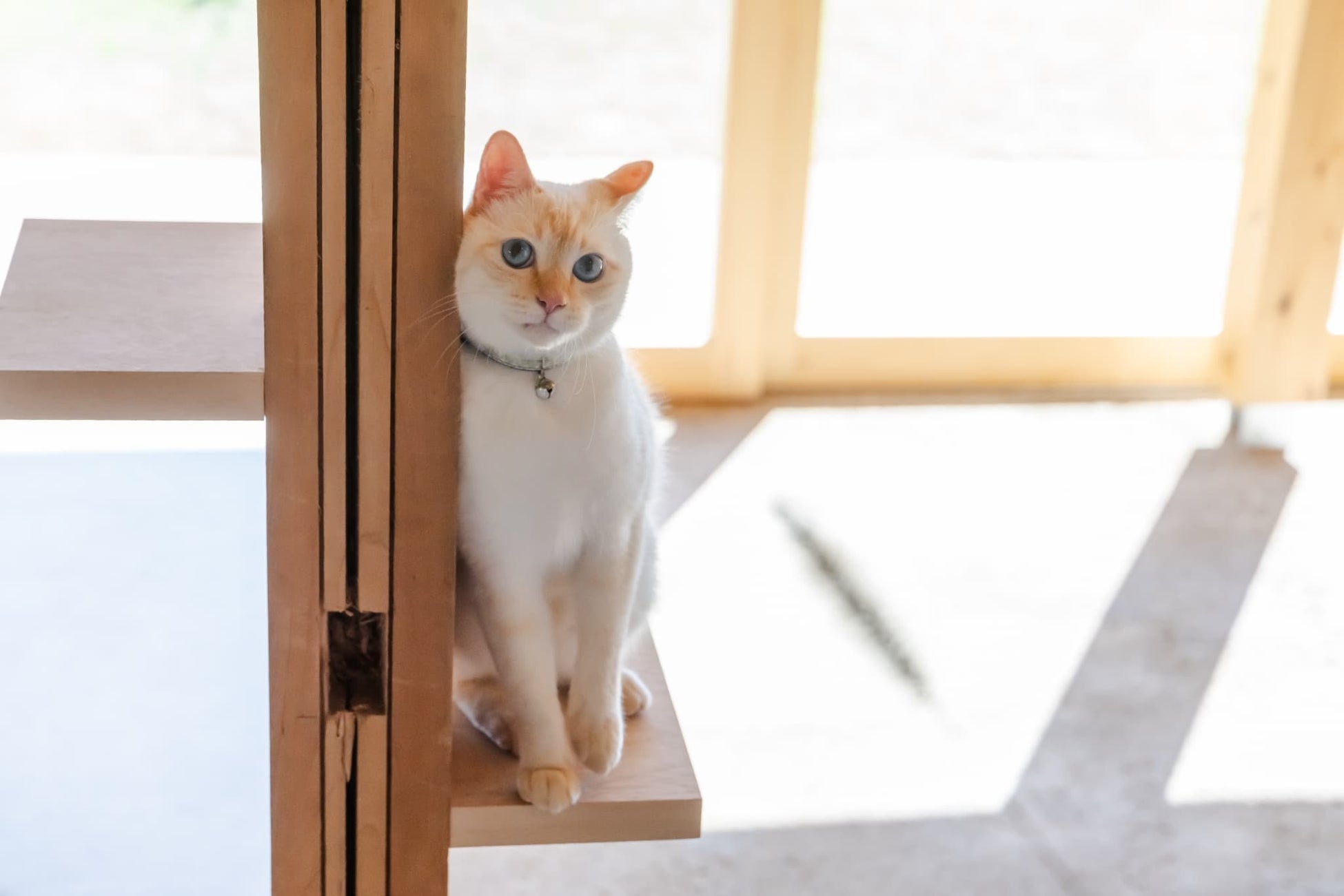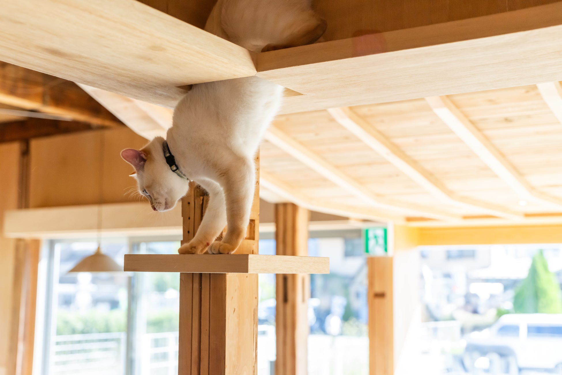 キャットウォークやキャットタワーを備えた空間設計により、初めての場所でもねこちゃんが自然体で過ごせる環境を整えています。