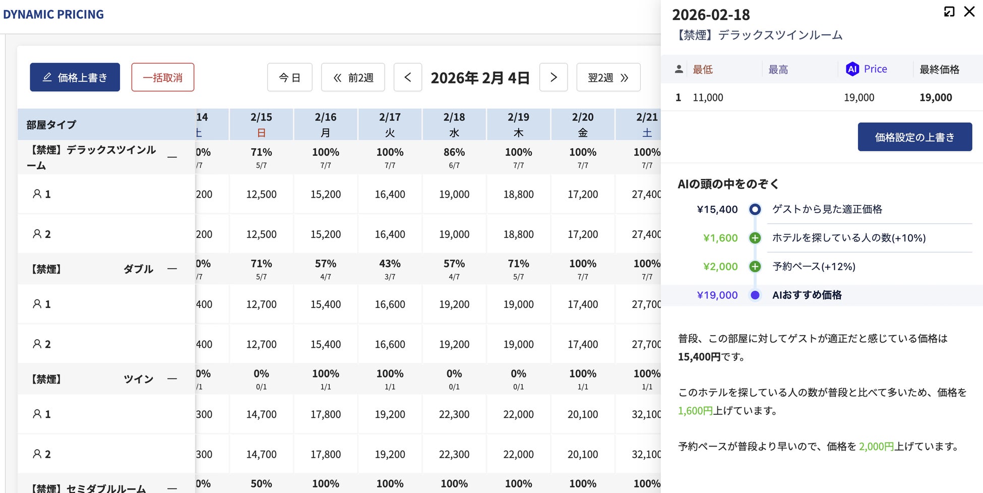 宿泊業界では、AIを活用したダイナミックプライシングが普及する一方で、