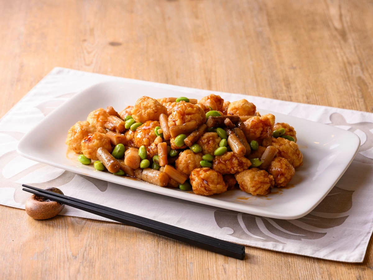 (右)山口県産の長州どりに甘辛いタレが絡んだ”県民のソウルフード チキンチキンごぼう”【新山口限定】