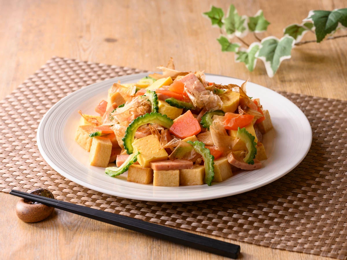 ゴーヤのほろ苦さと豆腐、卵のやさしい旨みにシークヮーサーの酸味が調和した”沖縄名物 ゴーヤチャンプルー”【那覇県庁前限定】
