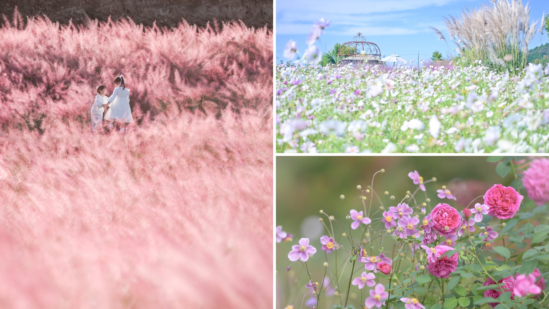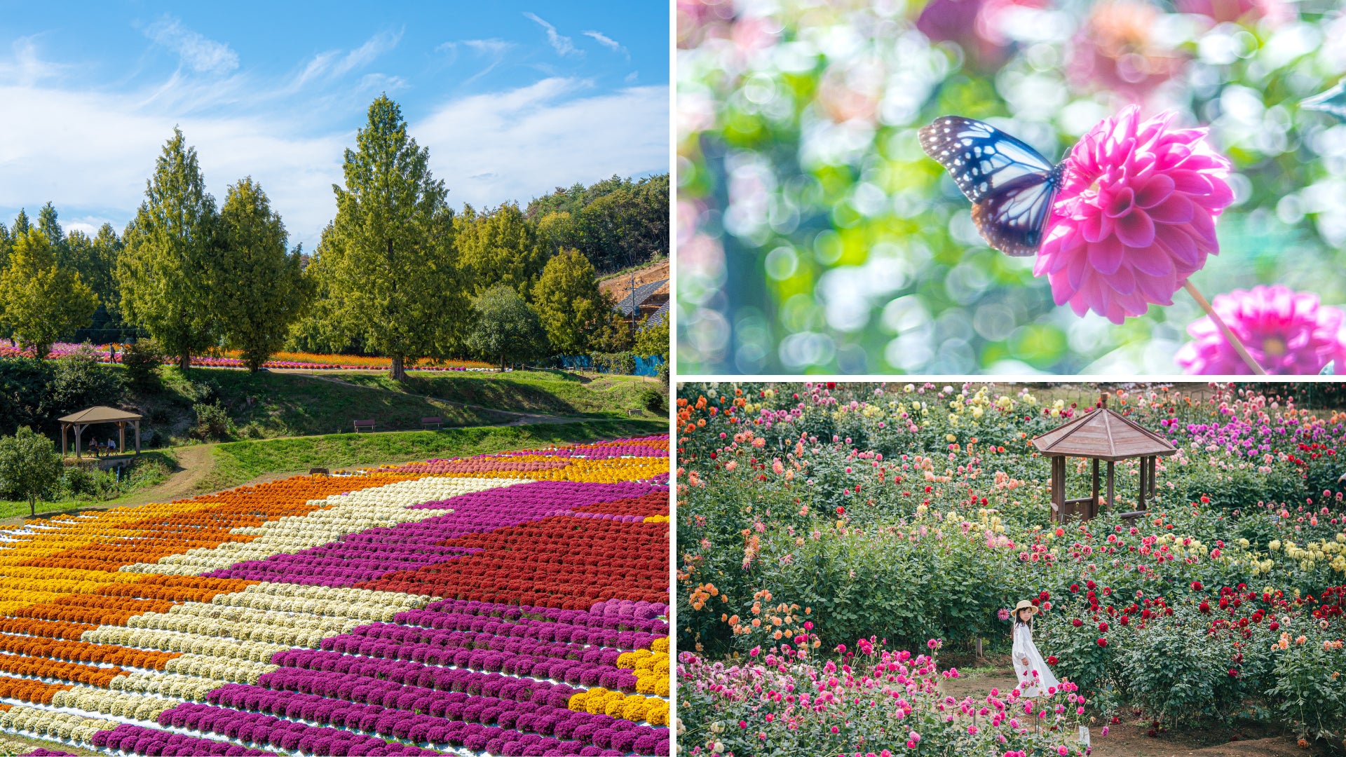 豪華絢爛・多種多様なダリアと、色鮮やかで可愛らしい花姿のガーデンマムの、秋の絶景をご堪能ください。