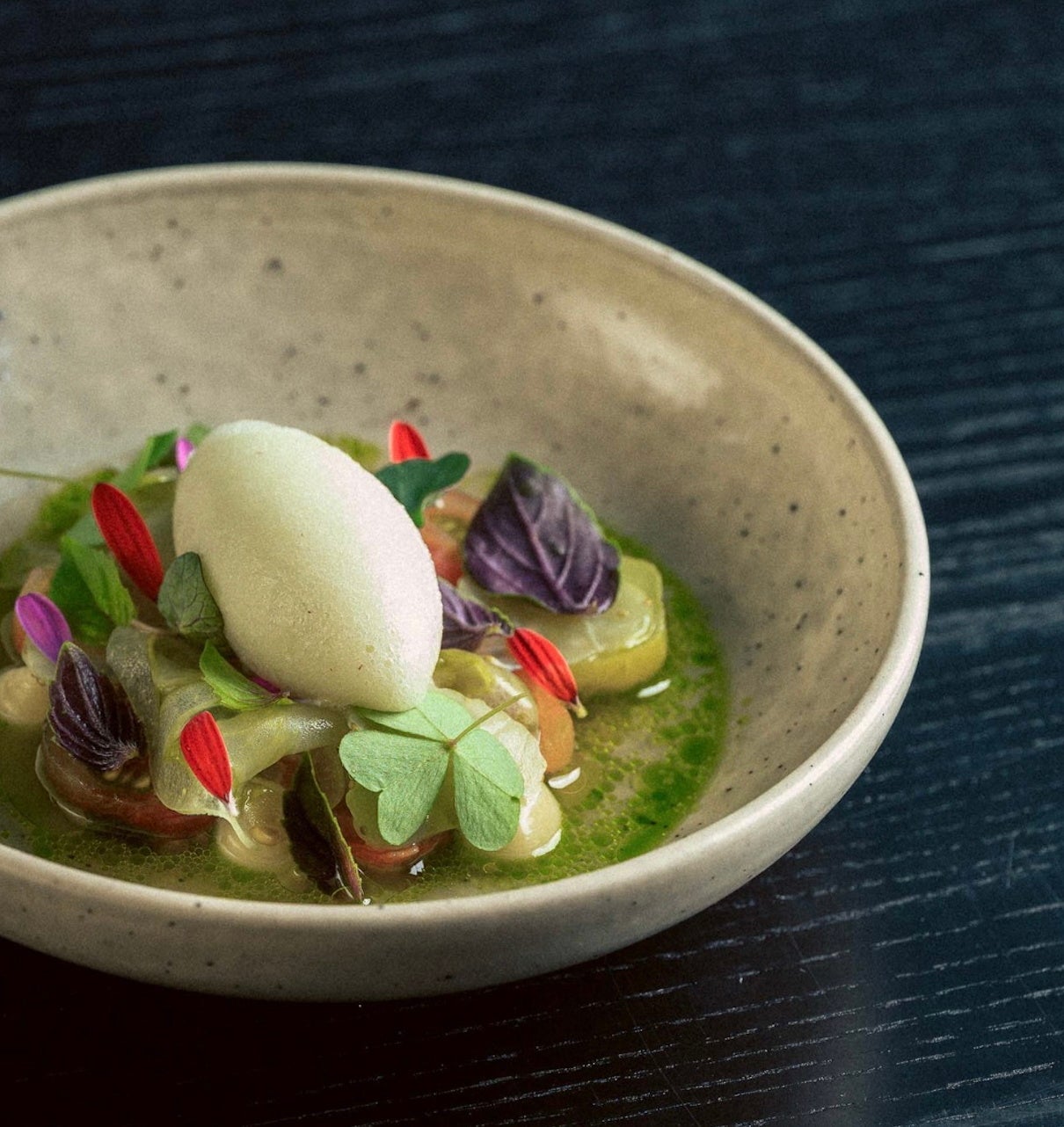 かつての産院(建てられたのは1901年)を改装したこのレストランは、洗練されたモダンな空間で食体験を提供しています。来店者はまず、自然観察を楽しめる庭園でゆったりと過ごし、周囲の音や景色に身を委ねながら、食事の時間を迎えます。