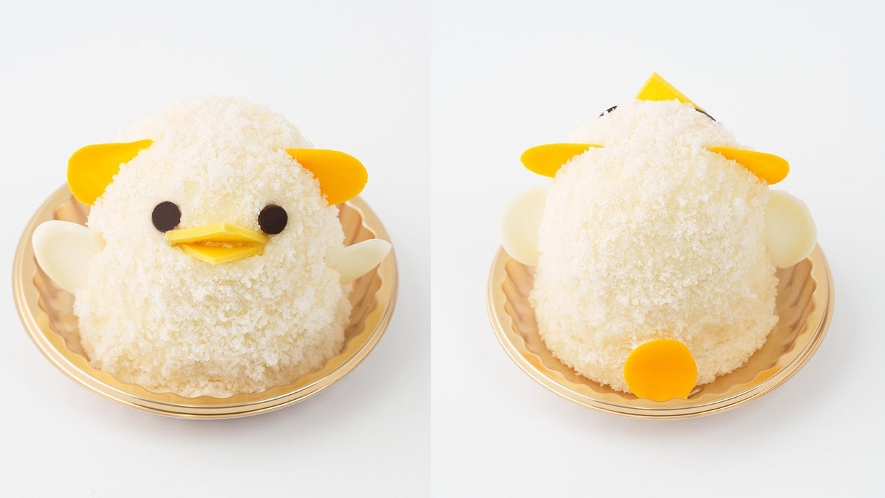 コラボ商品「みちまるくんぴよりん」は、名古屋コーチンの卵を使った濃厚なプリンを、ほんのり甘い桃のババロアで包み、仕上げました。また、「みちまるくん」をイメージして、白いスポンジのクラムをまとわせ、チョコレートで作った、オレンジ色の“耳”と“丸いしっぽ”をつけました。ここでしか出会えない、特別なぴよりんです。
