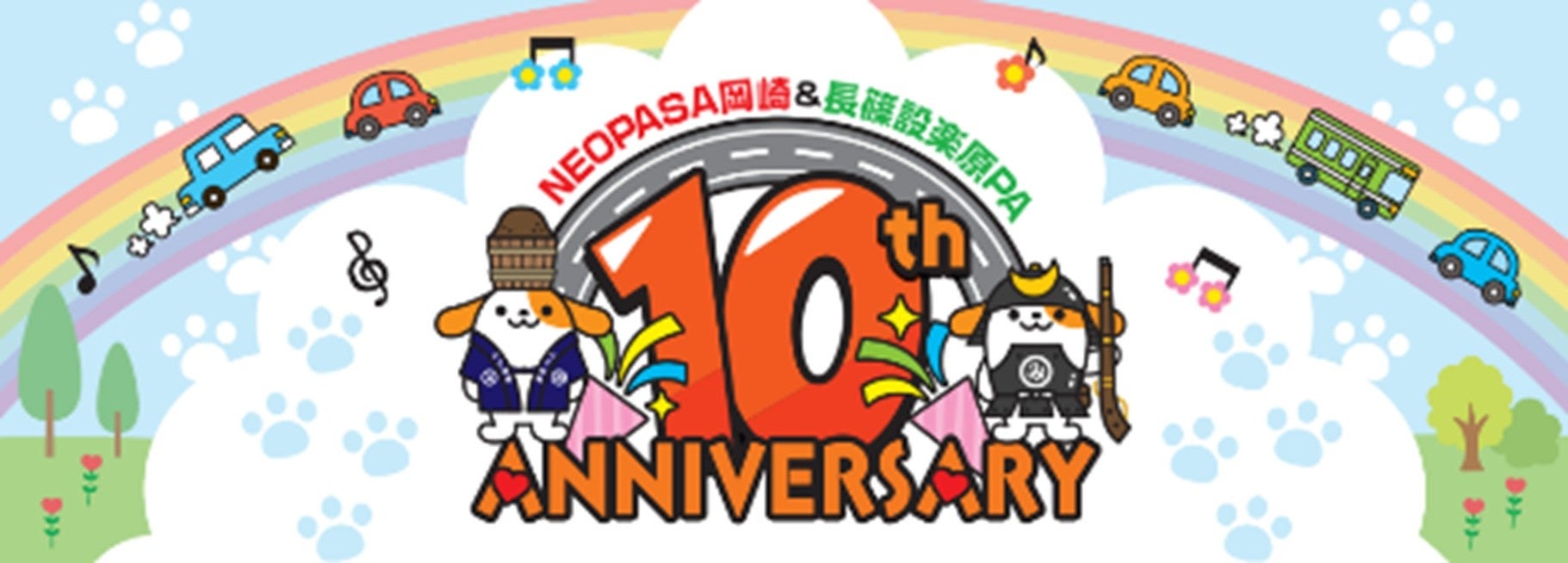 中日本エクシス株式会社 中部支店(愛知県豊田市、支店長・小口(おぐち) 知英(ともひで))は、E1A 新東名高速道路(新東名) NEOPASA(ネオパーサ)岡崎(集約、愛知県岡崎市)および、長篠設楽原パーキングエリア(PA)(上下線、愛知県新城市)にて、開業10周年を記念して、お客さまへこれまでのご愛顧に感謝を込めた「NEOPASA岡崎・長篠設楽原PA 開業10周年記念イベント『祝の陣』」を開催します。