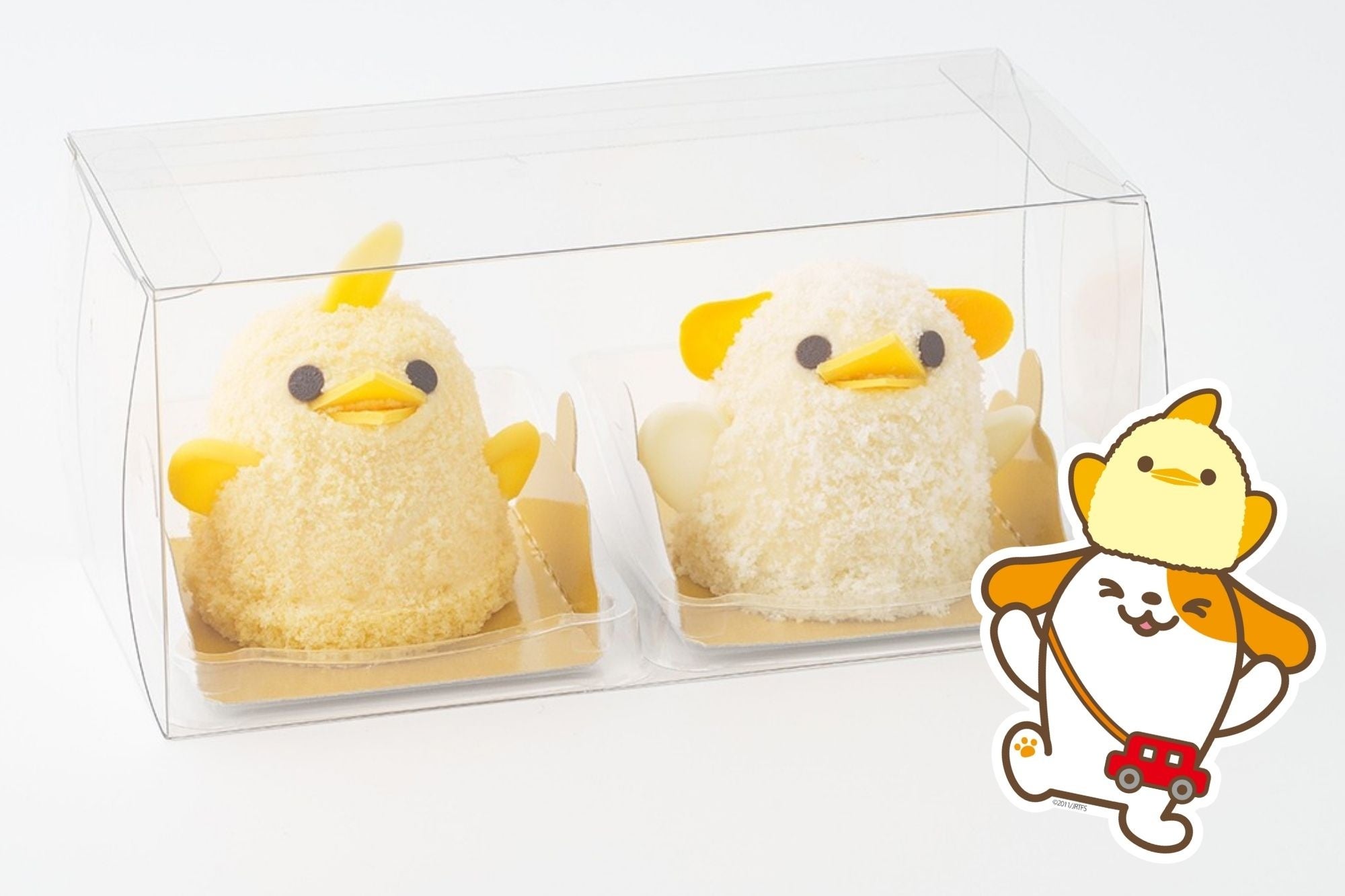 コラボ商品「みちまるくんぴよりん」は、名古屋コーチンの卵を使った濃厚なプリンを、ほんのり甘い桃のババロアで包み、仕上げました。また、「みちまるくん」をイメージして、白いスポンジのクラムをまとわせ、チョコレートで作った、オレンジ色の“耳”と“丸いしっぽ”をつけました。ここでしか出会えない、特別なぴよりんです。