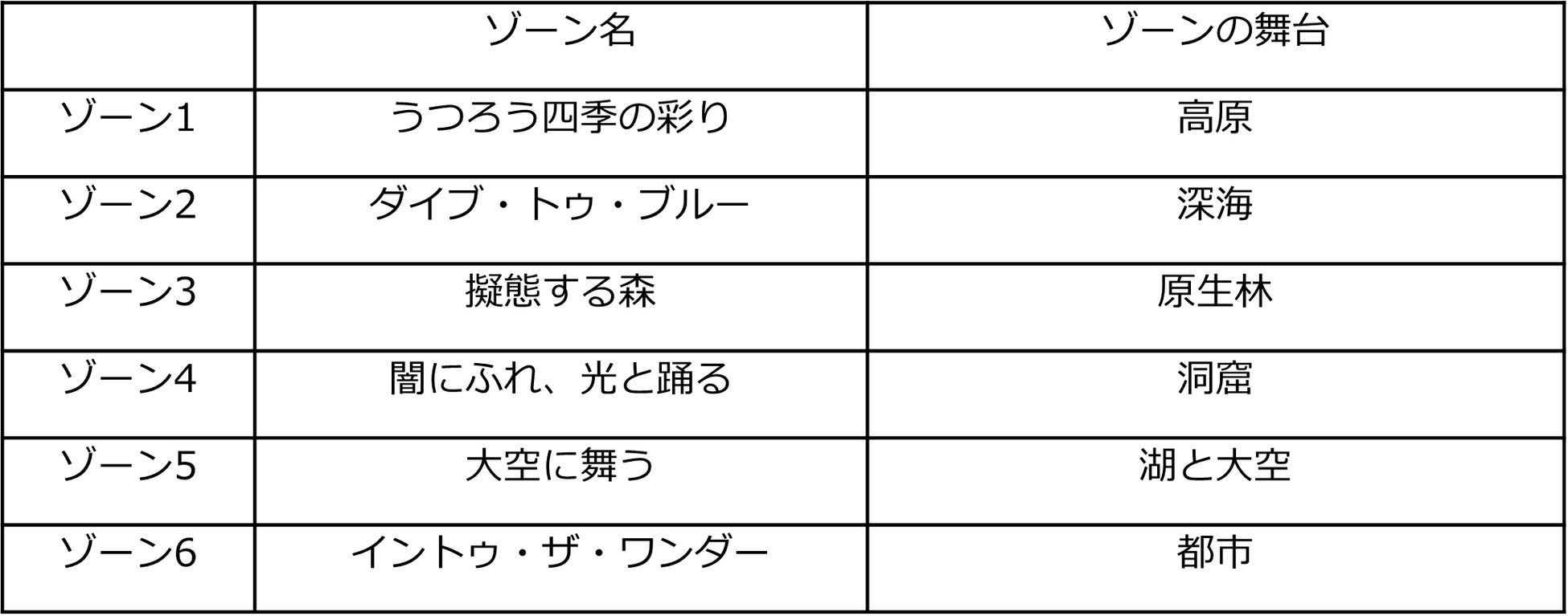 「ワンダリア横浜」は、深海や高原・原生林・洞窟など自然や都市を舞台にした6つのゾーンを巡り、来館者が生き物や自然     とのつながりを体感できる没入型体験施設です。