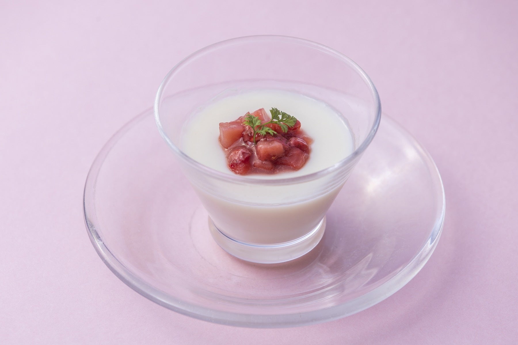 人気の杏仁豆腐に、春限定でいちごのソースをトッピングしました。八角のほのかな香りが、甘さの中に中華料理らしい奥行きを添えます。