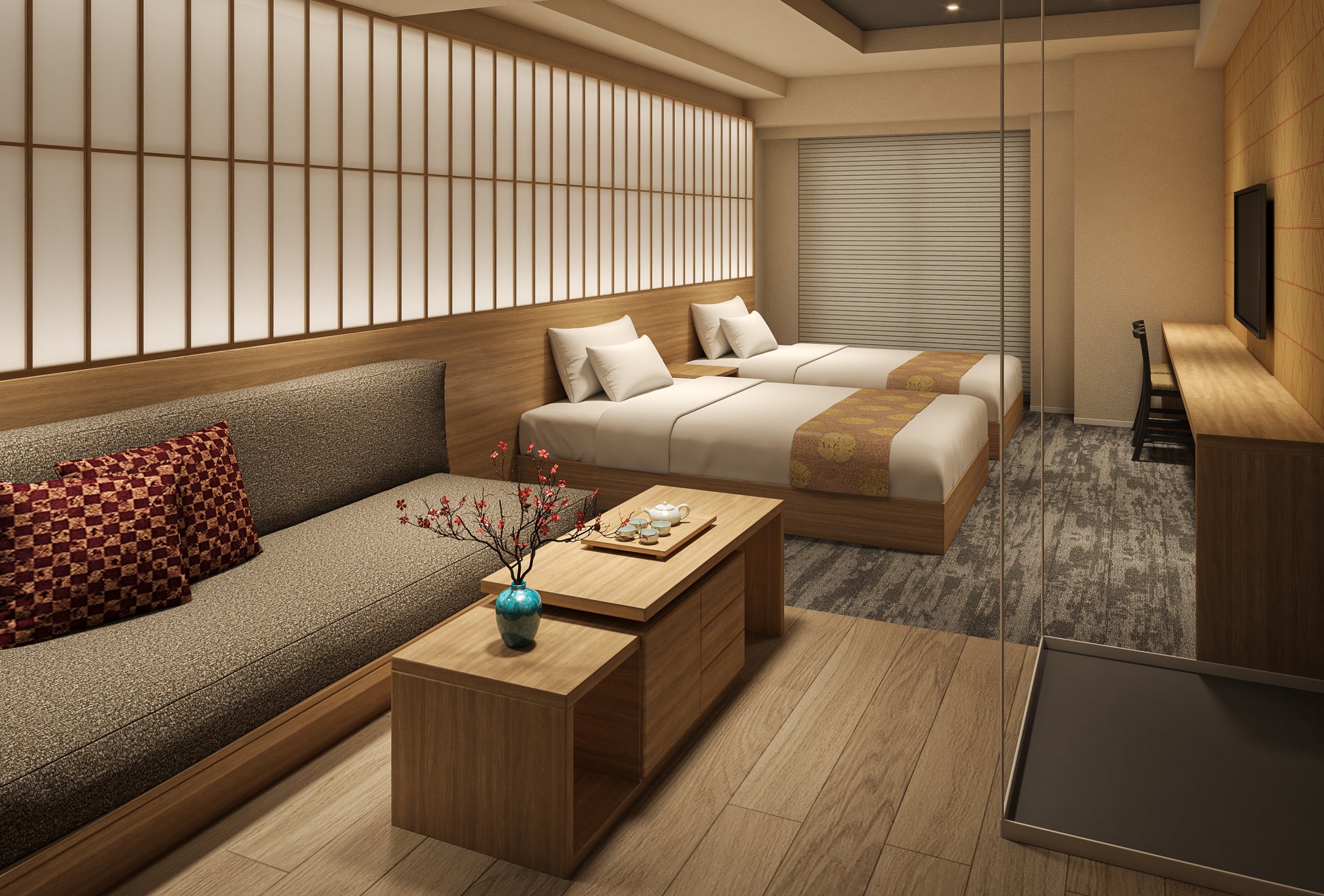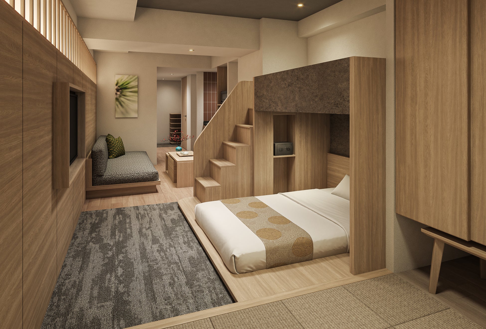 羽田空港へ直結、駅徒歩2分の好立地に全27室のアパートメントホテル。全室35㎡以上の広さと和の美意識を備え、ファミリーや長期滞在でも快適に過ごせる、落ち着きのある滞在空間を実現します。