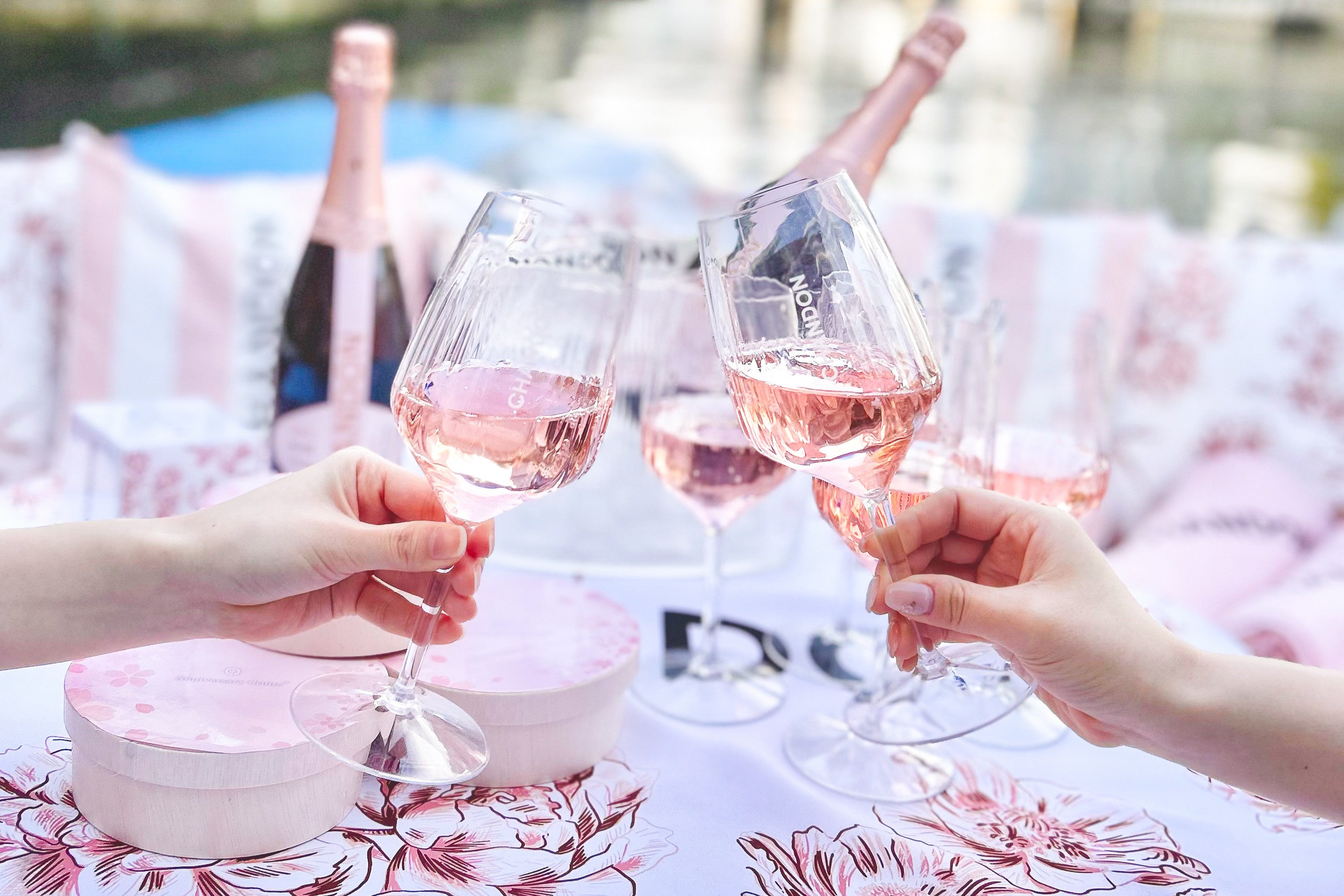 桜色の「シャンドン ロゼ」を片手に、満開の桜と水辺の景色を眺めながら、春の訪れを五感で感じる贅沢なひとときをお楽しみいただけます。