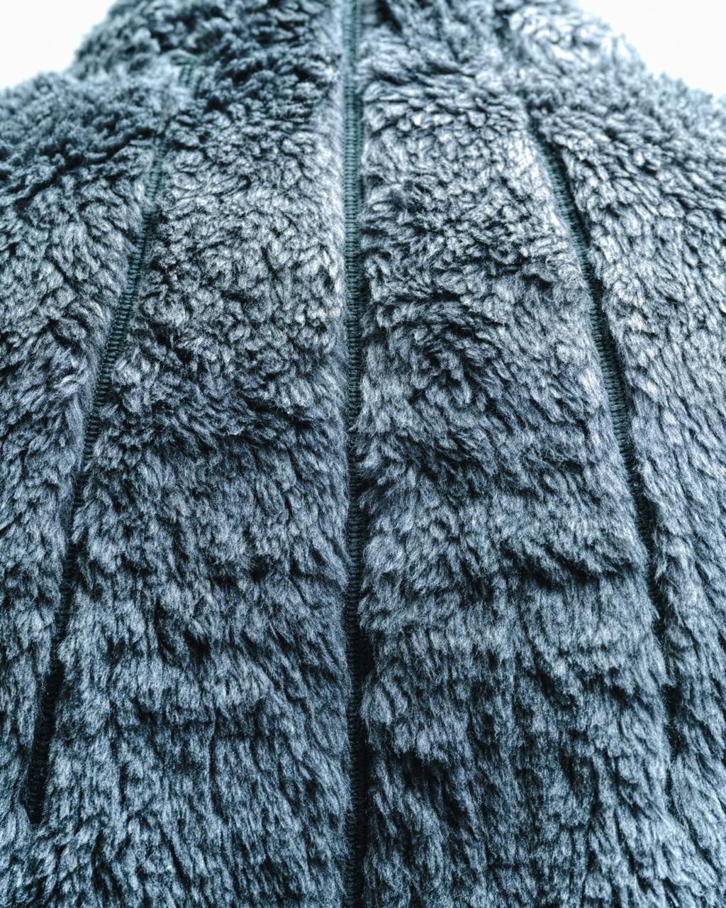 J.L-A.Lの独創性と最新技術が融合した「Fleece Jacket」は、衣服の未来を垣間見せる象徴的なプロダクトです。本製品の核となる、革新的な素材には、植物由来のバイオマスプラスチック「PlaX」のベースに、Spiber株式会社(本社:山形県鶴岡市/取締役兼代表執行役:関山和秀/以下、Spiber)が開発したプロテイン繊維素材「Brewed Protein™」、そしてシルクファーを組み合わせた次世代ボアフリースの素材が採用されています。J.L-A.Lの独創的なパネル構造によるデザインと、最先端の素材が持つポテンシャルを最大限に引き出すため、ゴールドウインとSynfluxが共同開発する生産システム「SYN-GRID」が導入されました。型紙の最適化により、複雑で独創的なデザインにもかかわらず、生産時の生地廃棄物を約50%に抑えることに成功。技術革新と高度なクリエイティブを融合し、持続可能な衣服の未来の在り方を提案します。