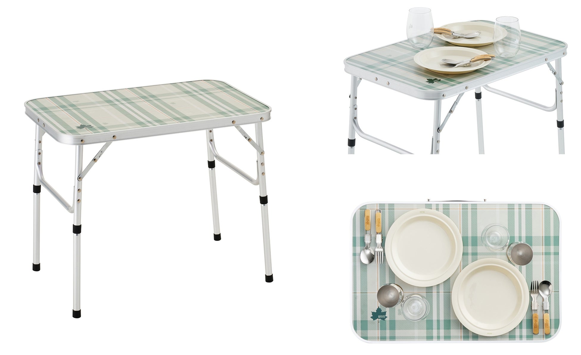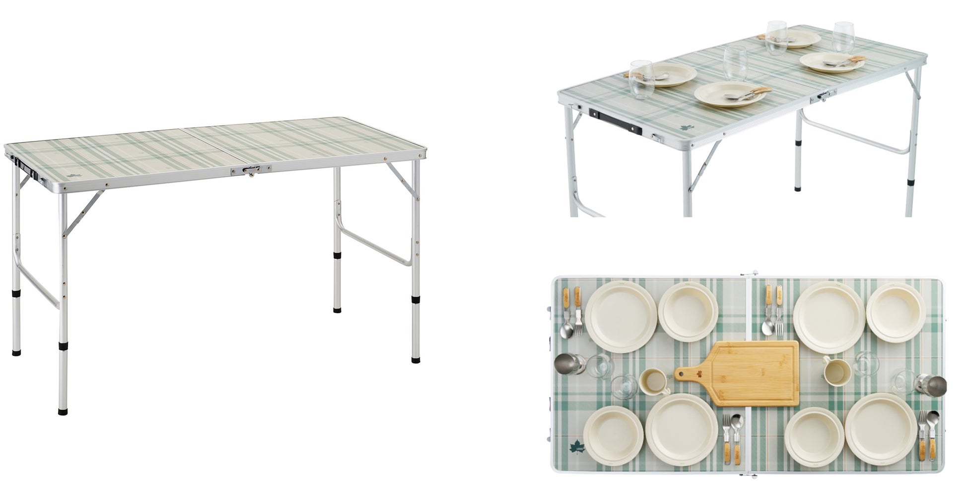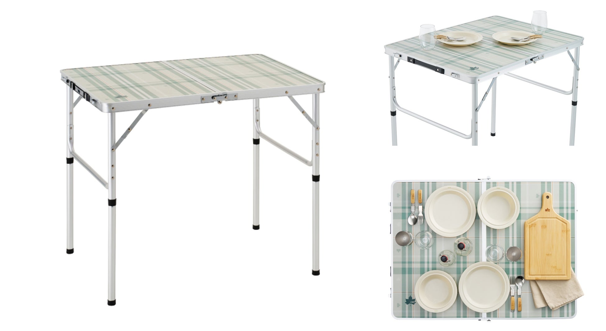 新型のアルミフレームの採用により、従来品よりも軽量性と耐荷重性を高め、持ち運びやすさと安定感を両立したテーブル。天板には、食卓を華やかに彩るテーブルクロス風デザインを採用し、キャンプの食事シーンをより楽しく演出する。4種とも耐荷重は40kgと、食器や調理器具を並べても安心して使用可能。