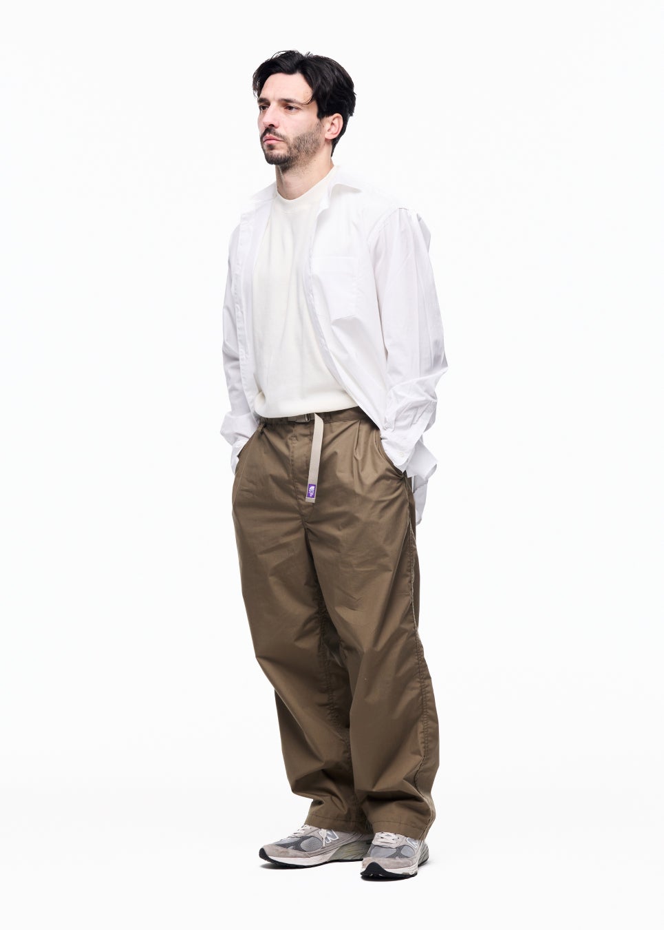 収納性を高めたポケットとループディテールが特徴の別注パンツ。ブランド定番のウェービングベルト付き。タック入りのリラックスシルエットで、カジュアルからきれいめまで幅広く対応。