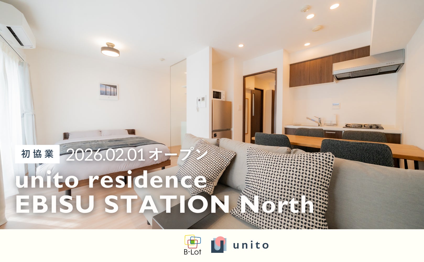 株式会社Unito(本社:東京都目黒区、代表取締役:近藤佑太朗、以下当社)は、株式会社ビーロット(本社:東京都港区、代表取締役:宮内 誠、以下「ビーロット」)の保有物件に、当社特許取得済み(※1)である日数単位の家賃システム「リレント」を導入した賃貸住宅「unito residence EBISU STATION North(所在地:東京都渋谷区)を、2026年2月1日に開業しました。