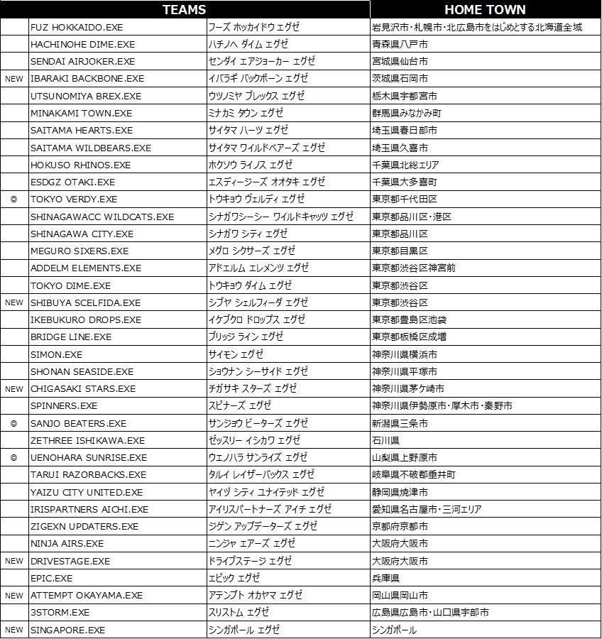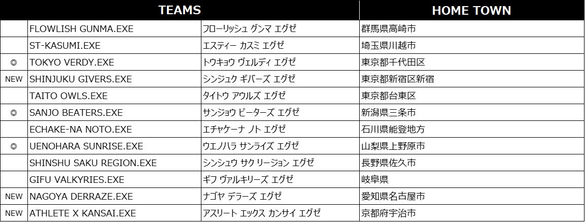 ※NEW…新規加盟チーム/◎…男女両カテゴリーで加盟するチーム