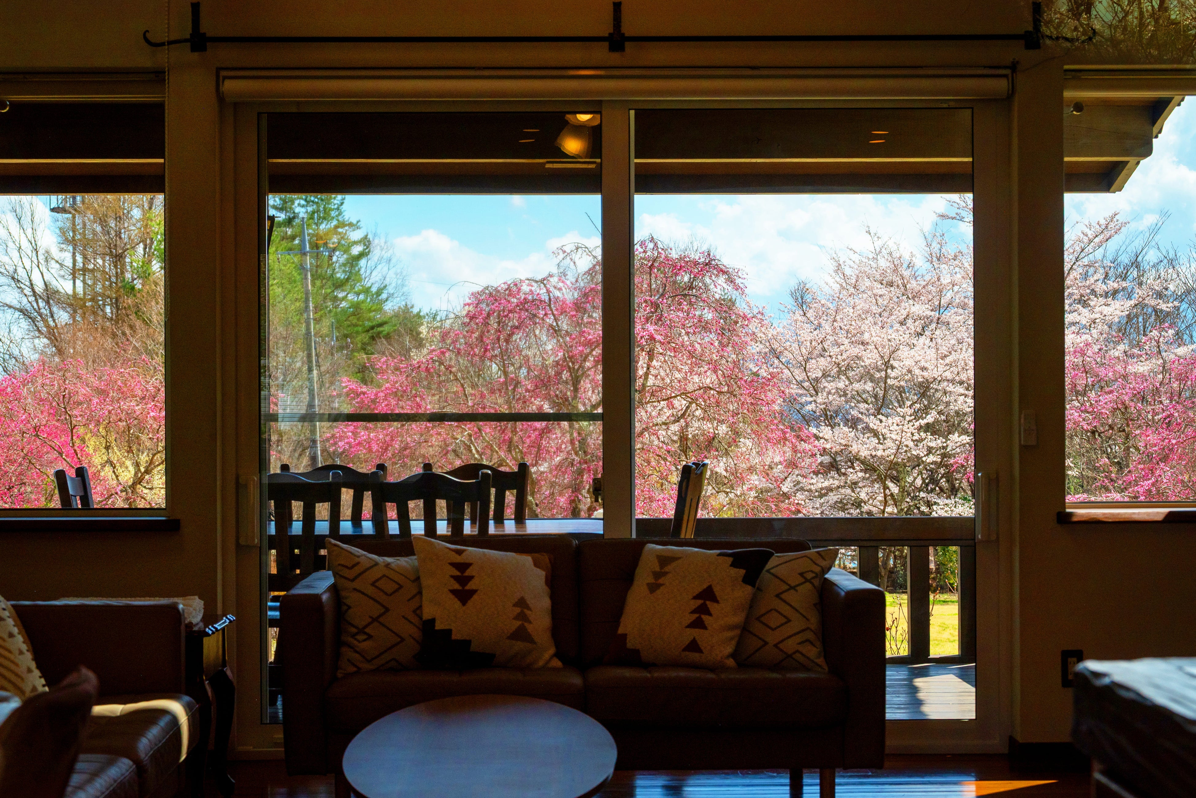 もちろんReTuneのヴィラのリビングや寝室からも庭に咲く一面の桜を見ることができます。
