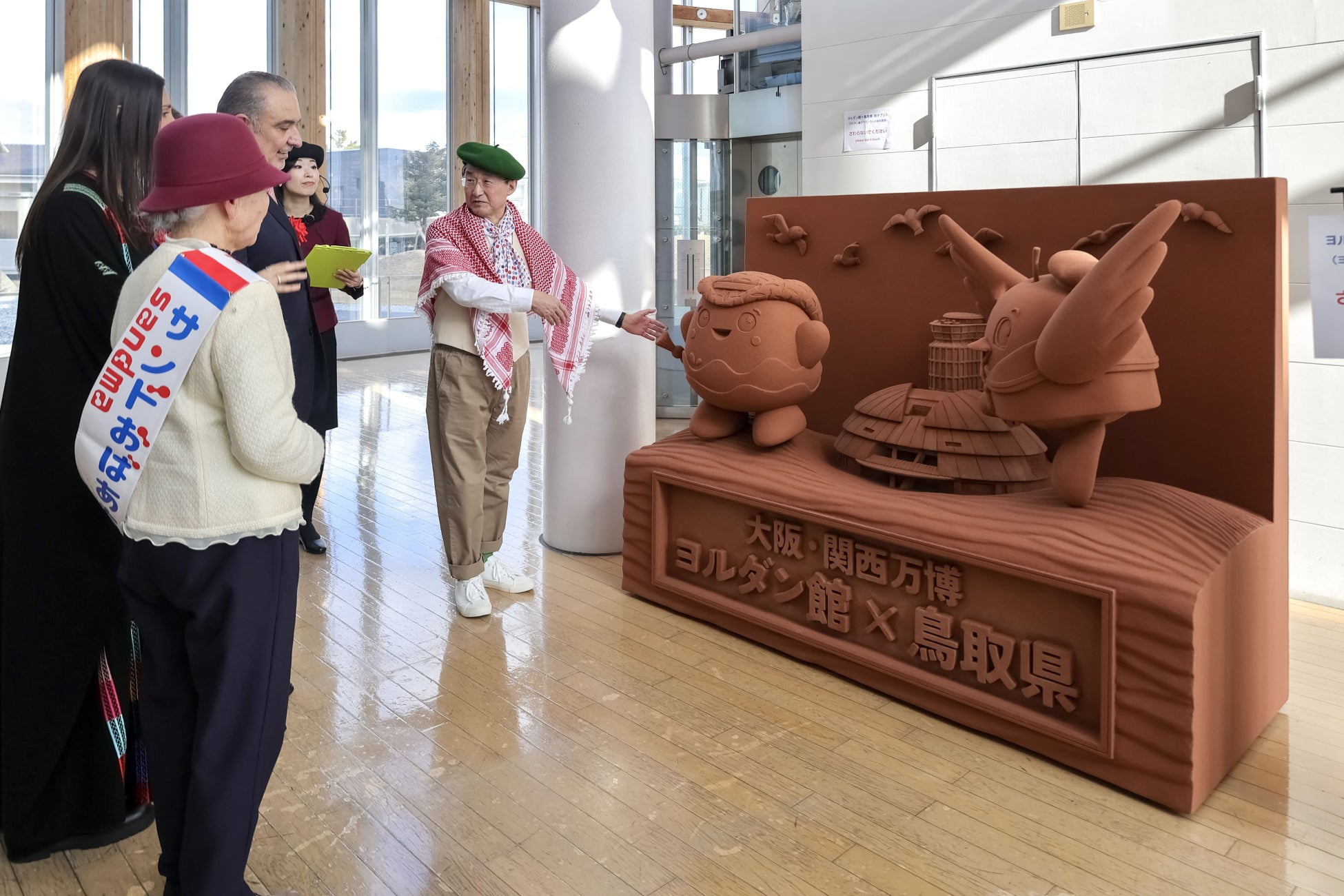 鳥取県では、ワディラムの赤い砂を展示するヨルダン館をはじめとする砂に関連する7つのパビリオンとともに「サンド・アライアンス」を結成し、砂で繋がった友好を深めながら、大阪・関西万博を連携して盛り上げる万博外交に取り組み、各パビリオンや本県への訪問を促す「砂ンプラリー(SAND QUEST)」や鳥取砂丘ビジターセンターでの加盟国の紹介を行いました。