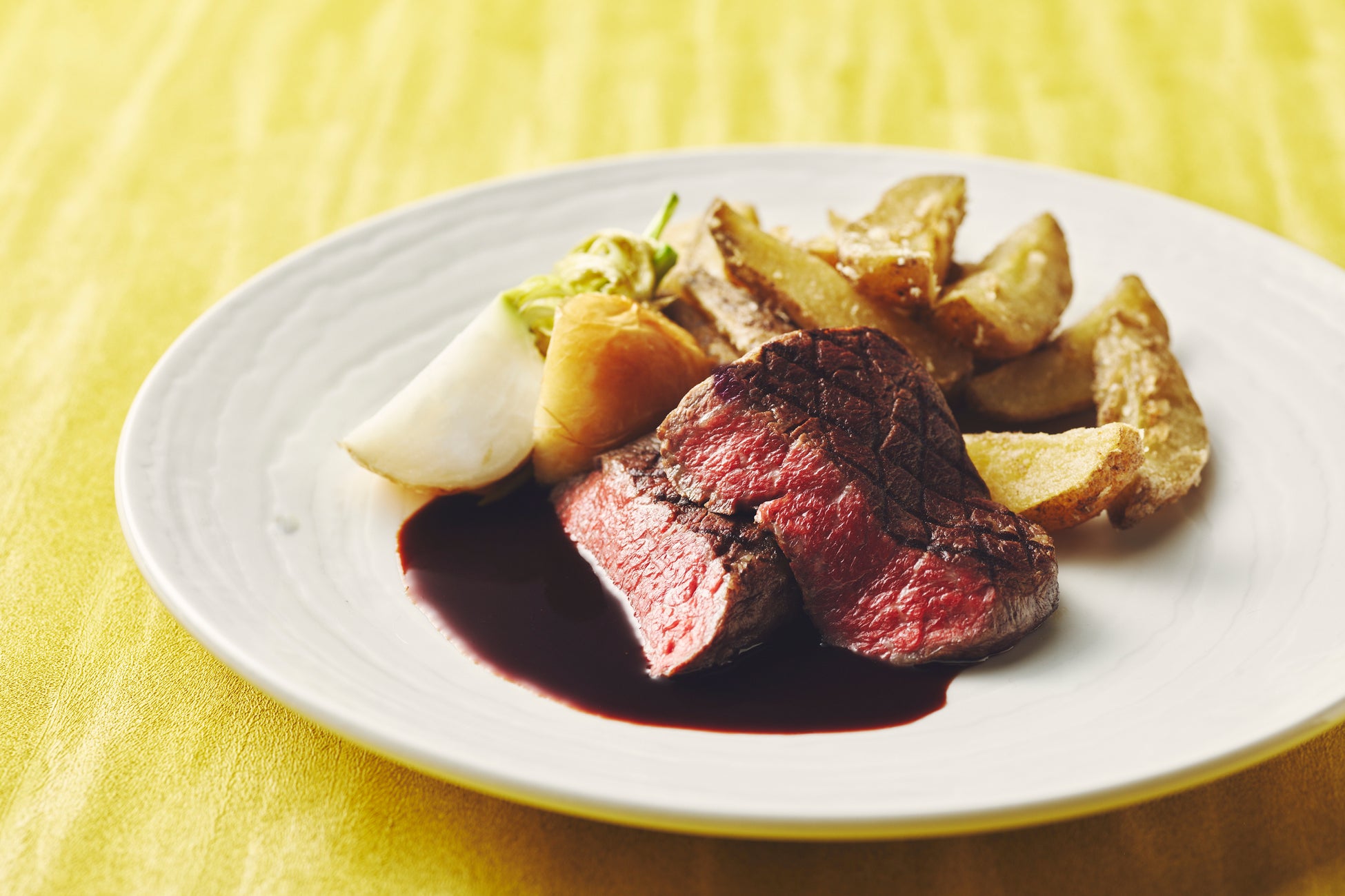 魚のグリル 大根のブレゼー 味噌エスプーマソース、豚ロースのグリル 季節野菜 味噌とマスタードソース、チキンルーレ グリルオニオン・マッシュルーム 柚子胡椒クリームソースに加え、和牛の炭火焼き グリル野菜 わさびビーフソース(+2,500円)など、素材の旨みを最大限に引き出したラインアップをご用意しております。
