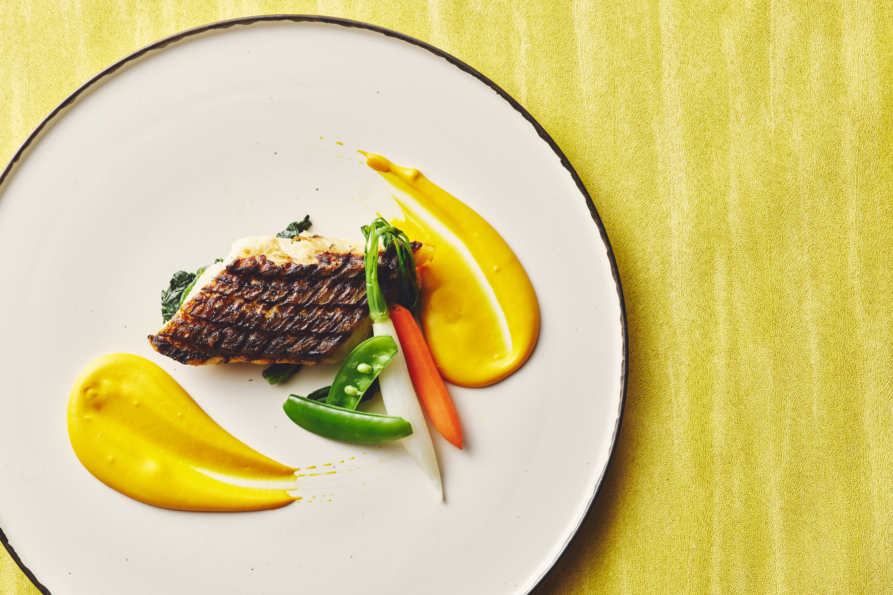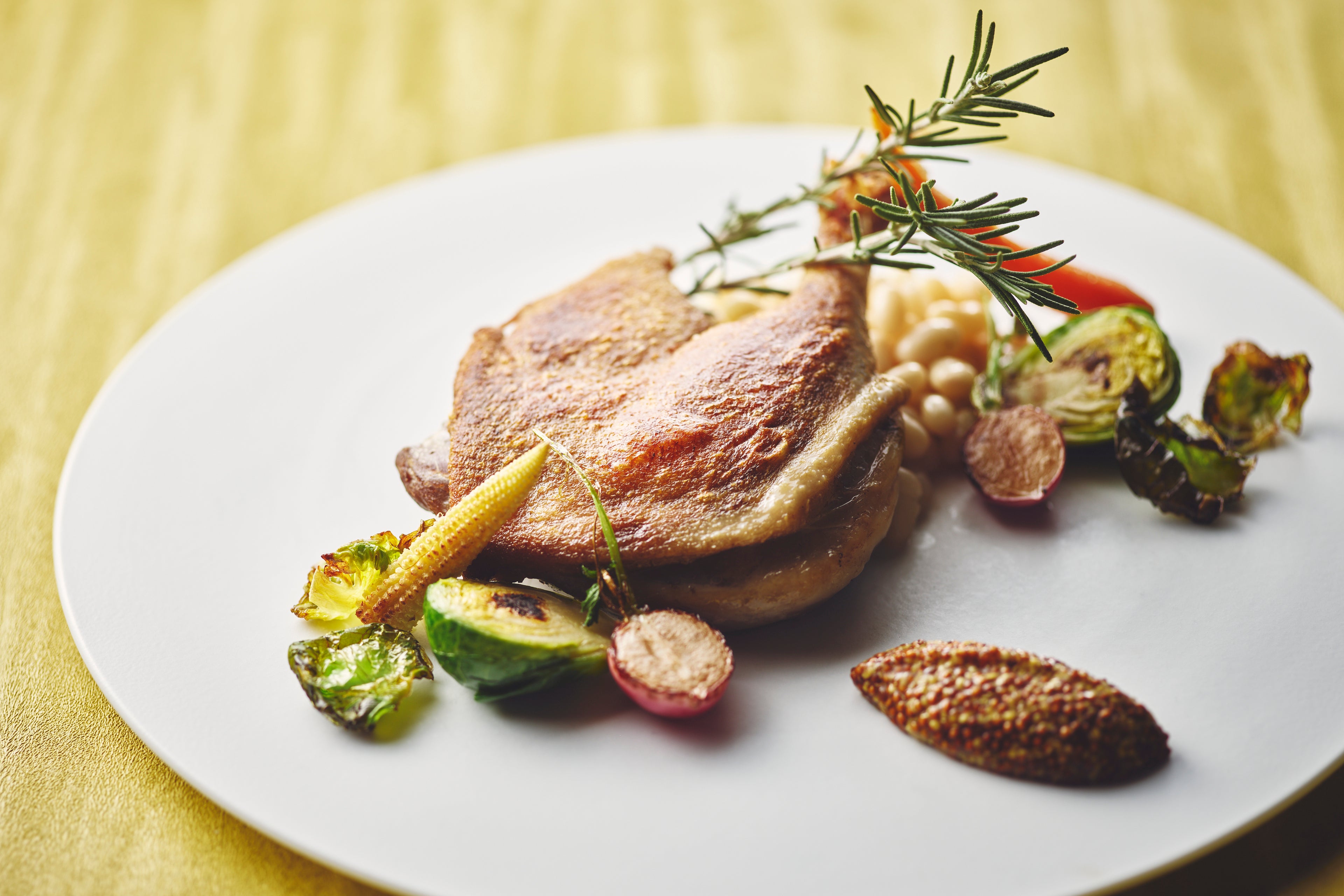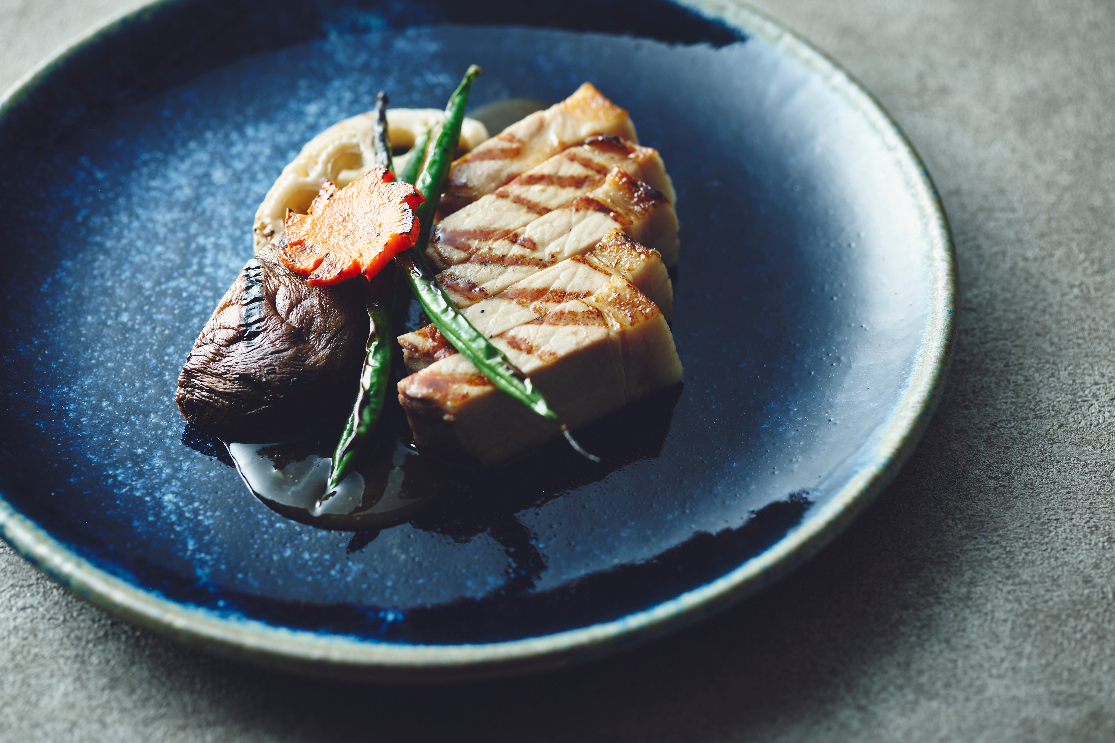 魚のグリル 大根のブレゼー 味噌エスプーマソース、豚ロースのグリル 季節野菜 味噌とマスタードソース、チキンルーレ グリルオニオン・マッシュルーム 柚子胡椒クリームソースに加え、和牛の炭火焼き グリル野菜 わさびビーフソース(+2,500円)など、素材の旨みを最大限に引き出したラインアップをご用意しております。
