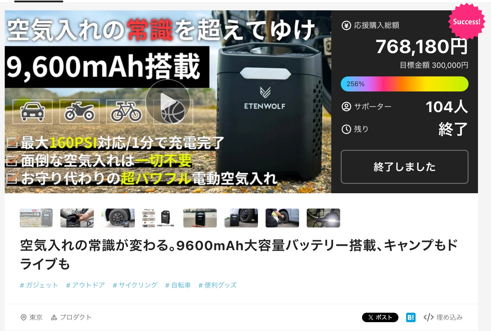 ETENWOLF製品についても、クラウドファンディングを通じて日本市場での需要検証および販売実績を積み重ねてきた実績があります。
