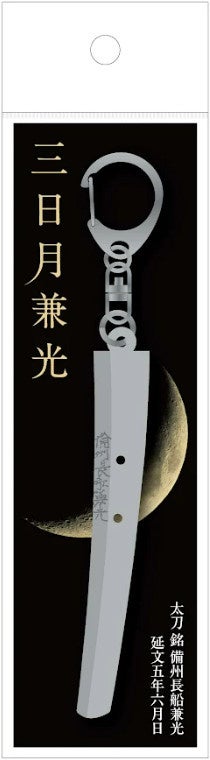 特別展「三日月兼光と備前の名刀」の開催を記念し、三日月兼光をモチーフにした茎キーホルダーや刀朱印などの新作オリジナルグッズを販売します。茎キーホルダーは、三日月兼光の銘を忠実に再現したグッズで、オリジナルグッズは北館1F ミュージアムショップにて順次販売いたします。その他の新作グッズの詳細は、当館公式SNS等でご案内いたします。