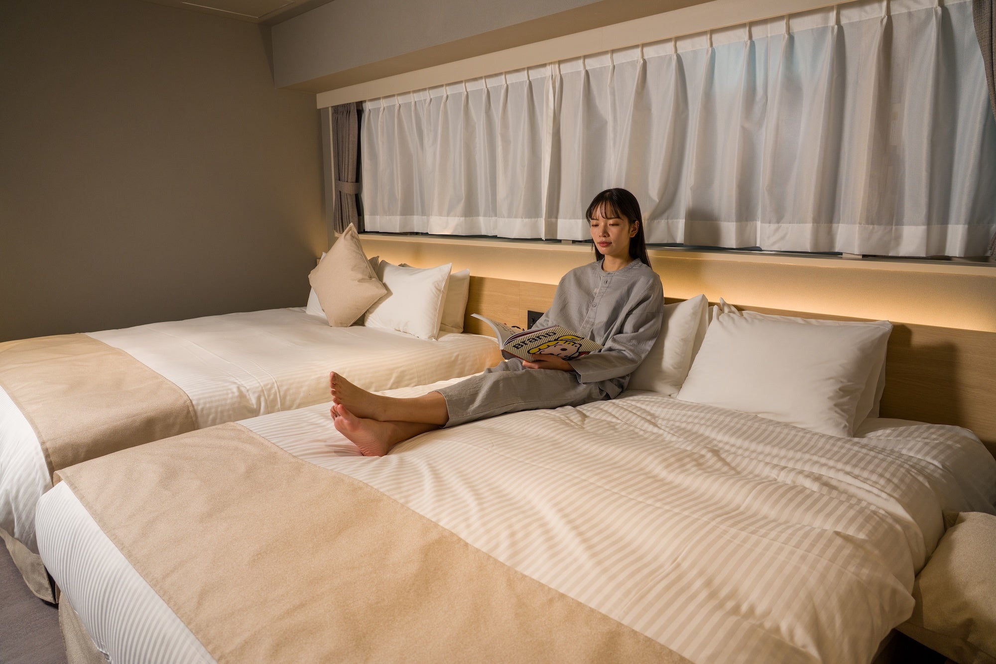 全室約79㎡・最大6名宿泊可能。滞在スタイルに合わせてカスタマイズされた「Sumu Wall」を全室に導入し、ホテルの「完成された空間」を「未完成の余白」へと変えました。