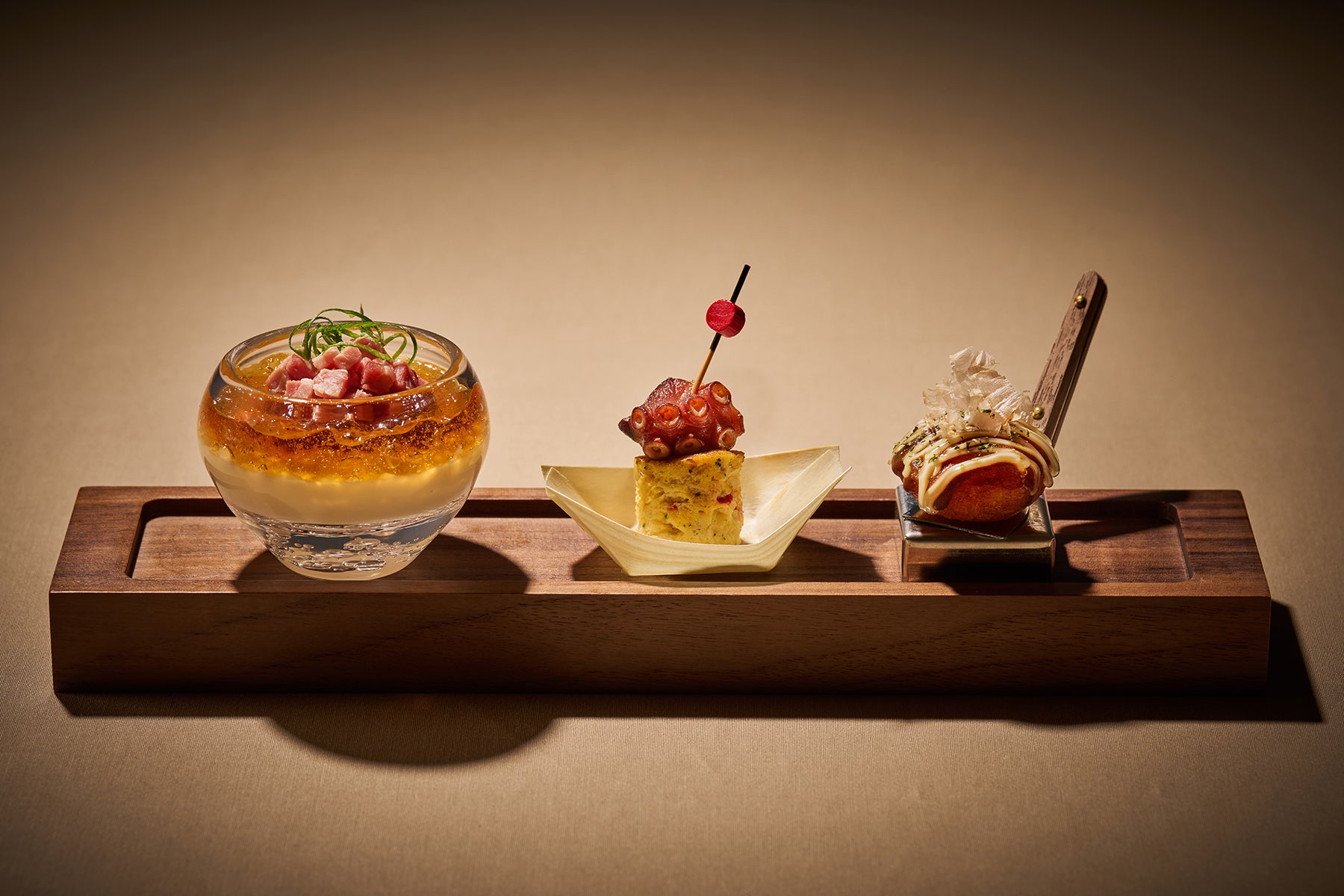 串カツや南部の郷土料理「かしみん焼き」など大阪ならではの料理を提供する、OMOカフェ&バルにて、「大阪満喫プレート」が新登場。肉吸いを前菜風にアレンジした「冷製肉吸い」や「たこ焼き風トルティージャ」、お好み焼き風に仕上げた「お好みコロッケ」の3品が楽しめるプレートです。パークを思いっきり遊んだ後、小腹を満たす夜食におすすめの一品を提供します。