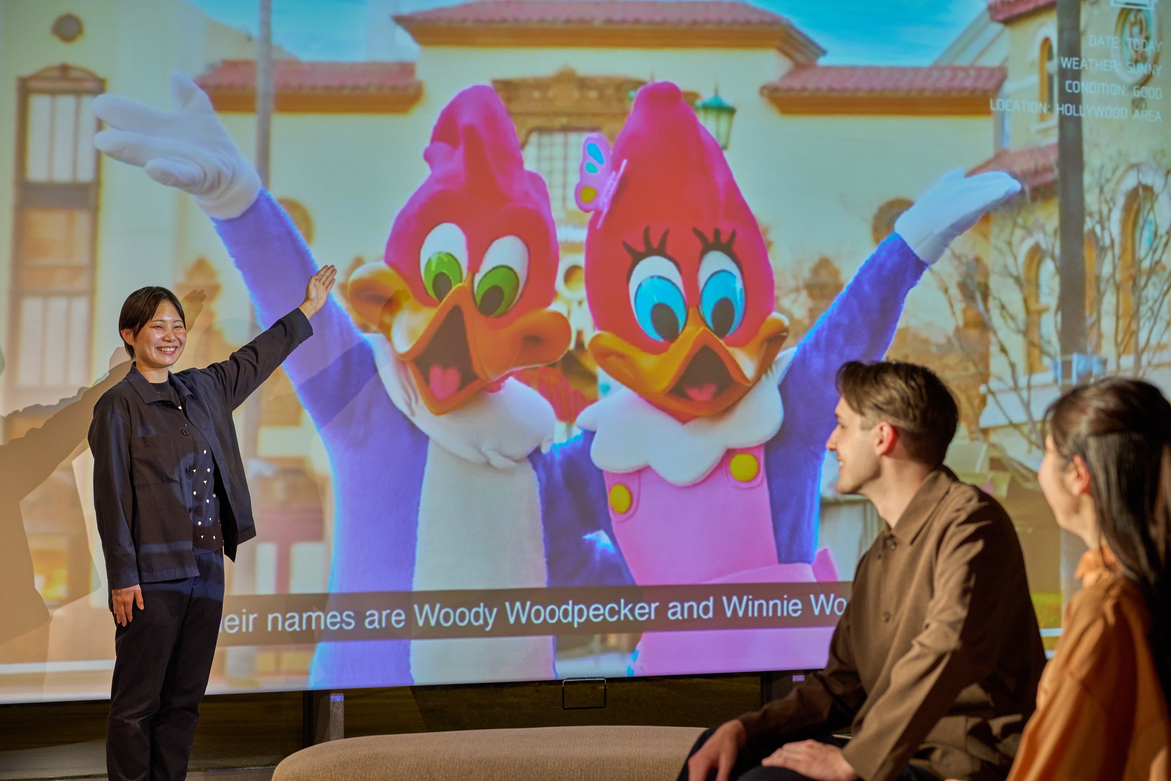 流れる映像には、ユニバーサル・スタジオ・ジャパンのパークの仲間たちが特別出演します。毒舌で人気のユニバーサル・スタジオ・ジャパンのSGM(しゃべくり・ゼネラル・マネージャー)こと「綾小路麗華」をはじめ、ウッディー・ウッドペッカーとウィニー・ウッドペッカーなど、愛らしいパークの仲間たちが勢ぞろい。それぞれの個性が映像を通してより一層際立ち、気づけばファンになること間違いなし。巨大なスクリーンいっぱいにオリジナル映像として登場するため、迫力満点です。