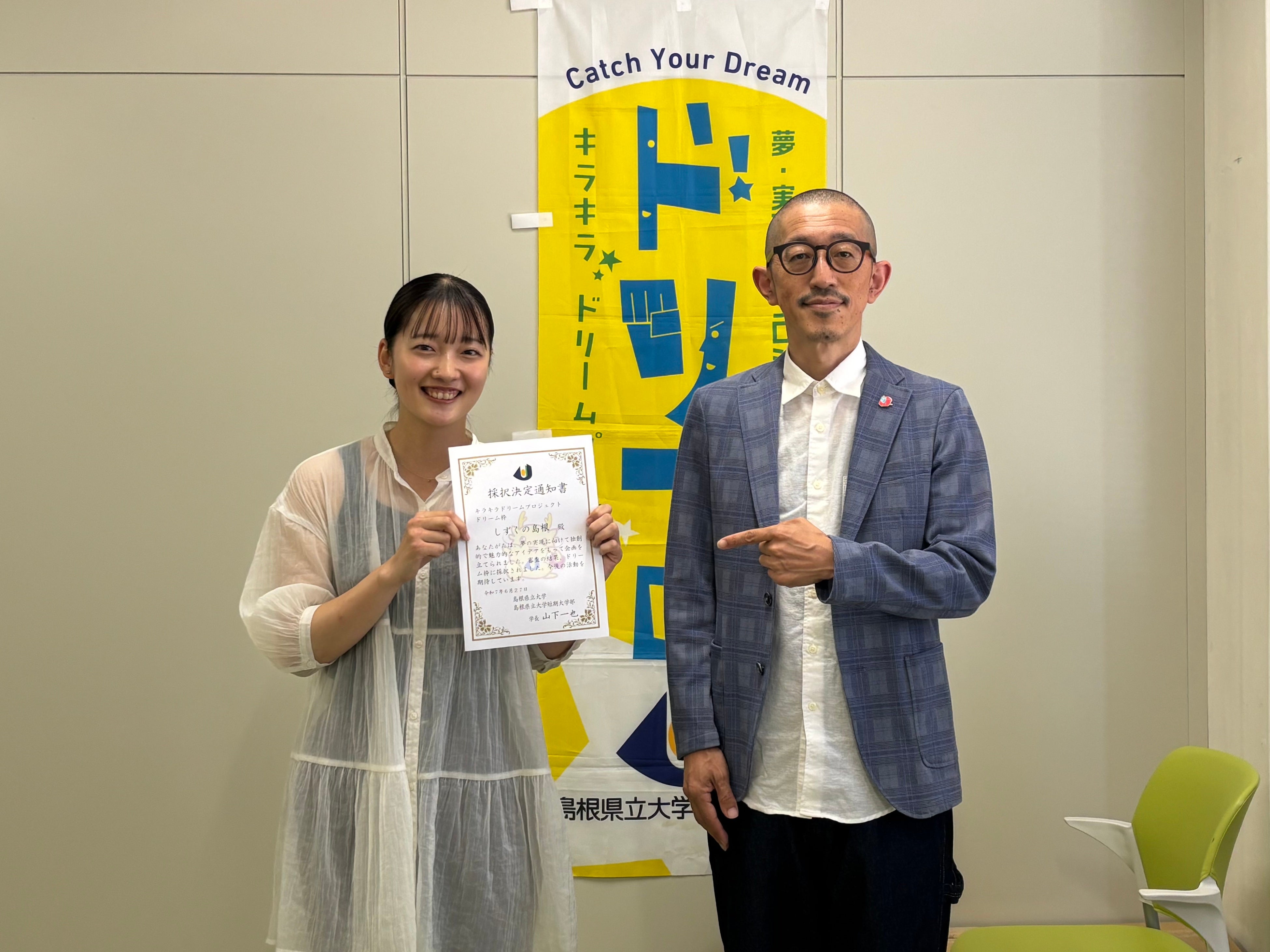 島根県立大学松江キャンパスが実施するキラキラドリームプロジェクトは、学生が企画・運営するプロジェクトに対して大学が費用を補助し、夢の実現を応援するコンテストです。今年度は3団体からの応募がありました。6月に学内審査会を開催し、人間文化学部地域文化学科の学生2名からなる「しずくの島根」が採択され、1月末まで活動を行ってきました。本報告会では、活動の成果や学び、今後の展望について発表します。