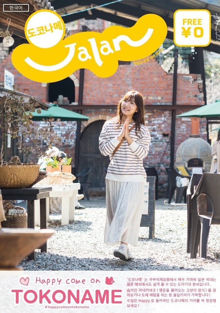 中部国際空港セントレアを玄関口とする常滑は、焼き物文化や招き猫、人気観光スポットのとこにゃん、酒蔵、海辺の風景など、多様な観光資源を有しています。ハングル版「常滑じゃらん」では、初めて常滑を訪れる韓国人旅行者にも分かりやすく、やきもの散歩道を中心とした街歩きや、体験コンテンツ、グルメ情報を紹介しています。各観光スポットへのアクセス情報や駐車場情報も盛り込み、韓国からの個人旅行客が安心して、レンタカーも活用しながら回遊できる構成になっています。