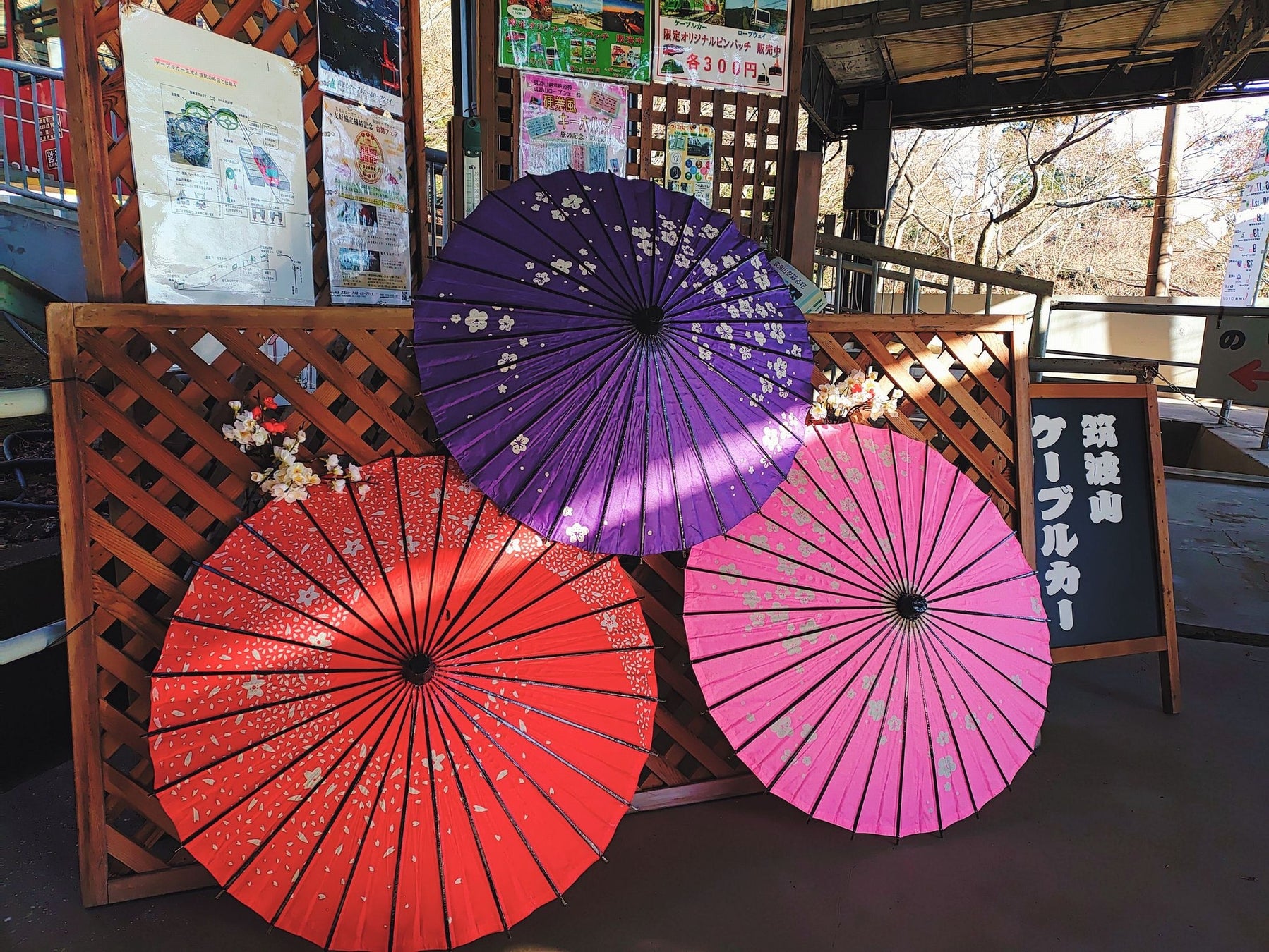 ケーブルカー宮脇駅にて、番傘と和花の装飾が登場いたします。