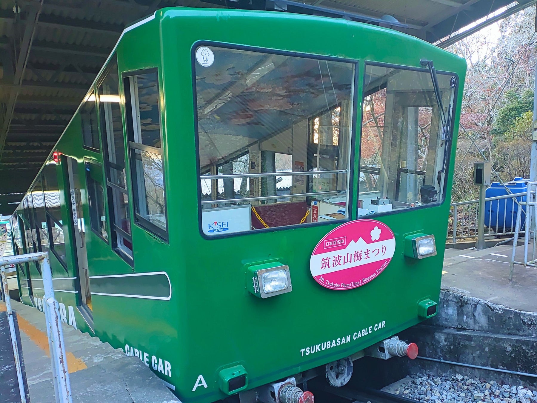 ケーブルカーのヘッドマークが梅まつり限定デザインとなります。