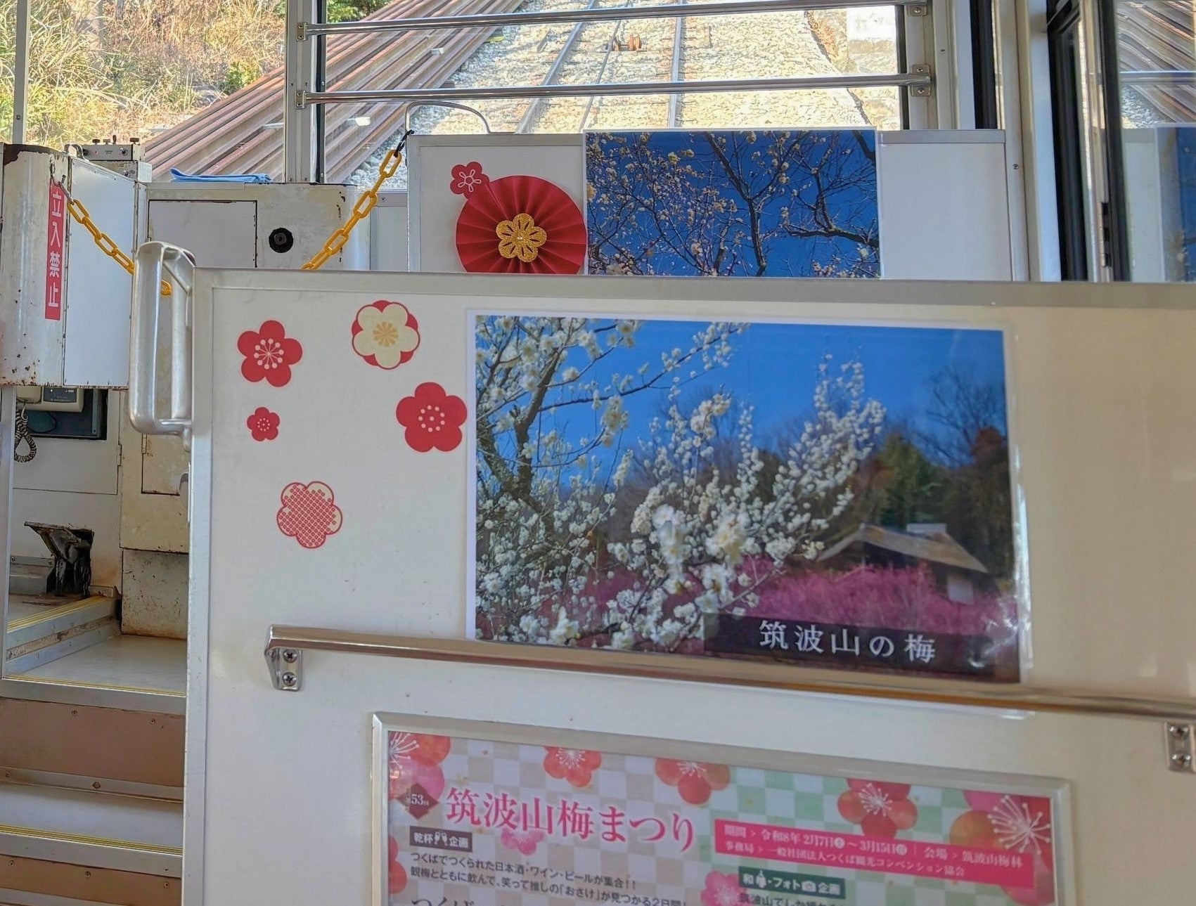 ケーブルカーの内装が「梅の花」仕様となります。