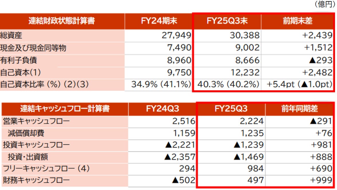 ● EBITは、1,791億円(前年比+24.2%)となり、第3四半期累計で過去最高益を達成しました。