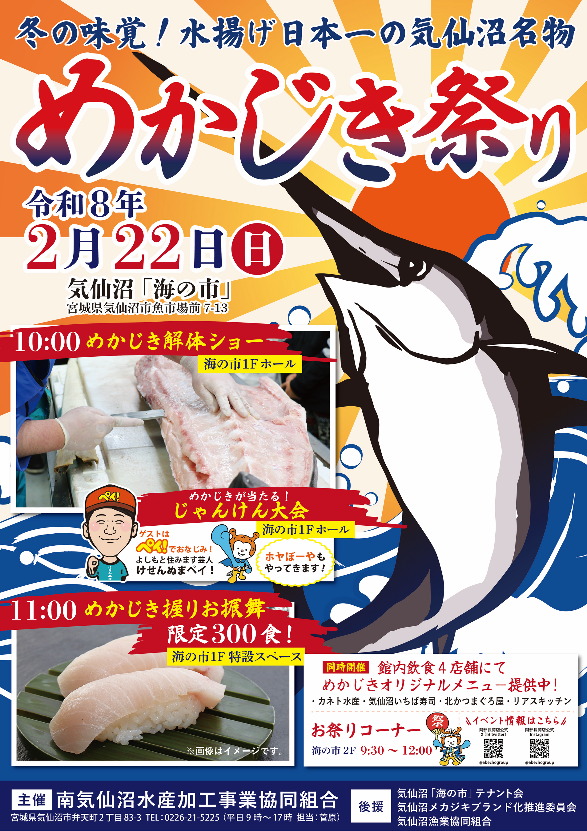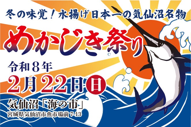 南気仙沼水産加工事業協同組合(理事長:阿部泰浩)は、気仙沼「海の市」にて2026年2月22日(日)に「めかじき祭り」を開催します。気仙沼が水揚げ日本一を誇る冬の味覚「めかじき」を存分にお楽しみいただける機会を提供します。