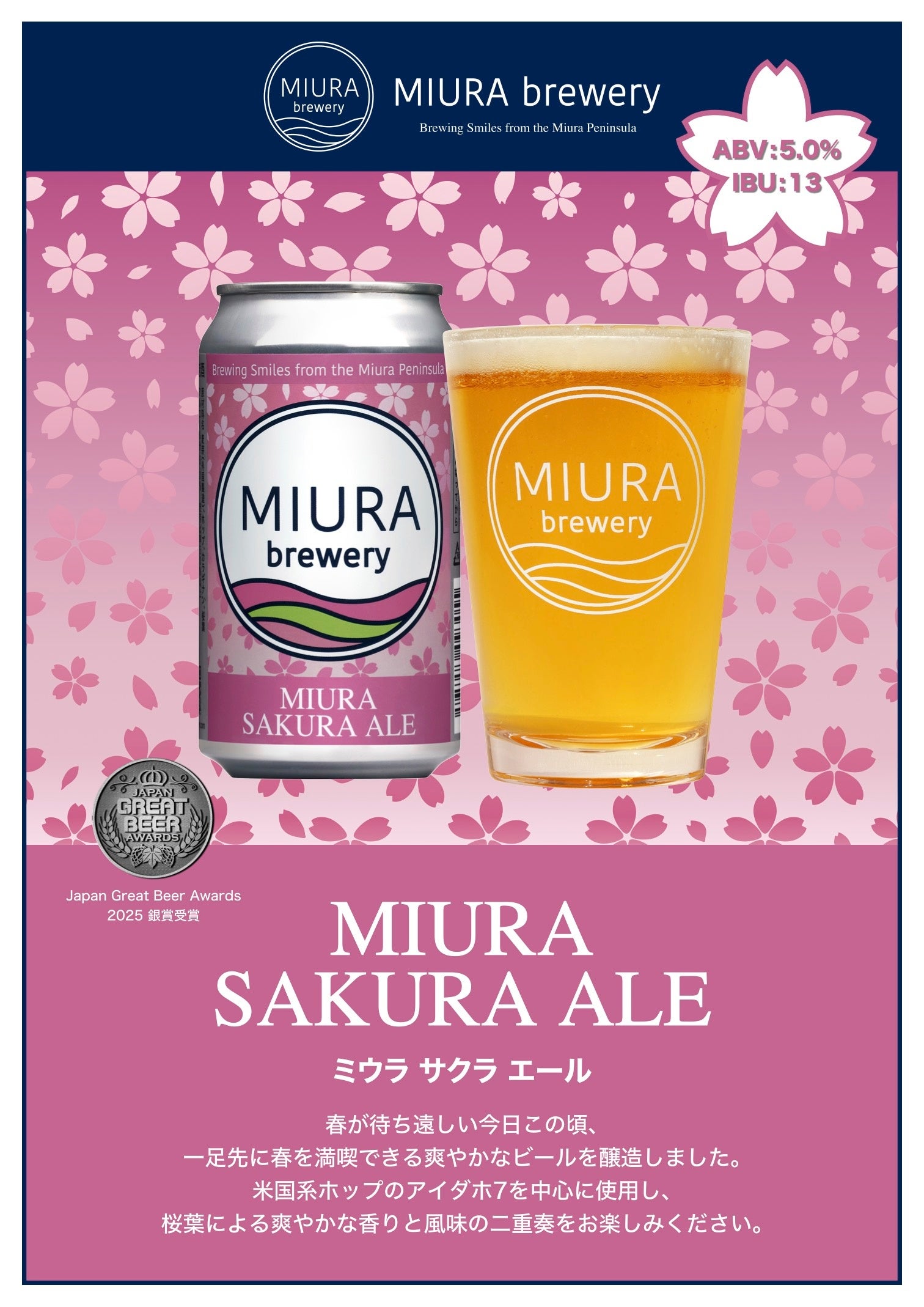 寒い日々が終わり、ゆっくり空気がほどけ始めるこれからの季節。ぜひ「MIURA SAKURA ALE」と共に、春の訪れを楽しんでいただければと思います。