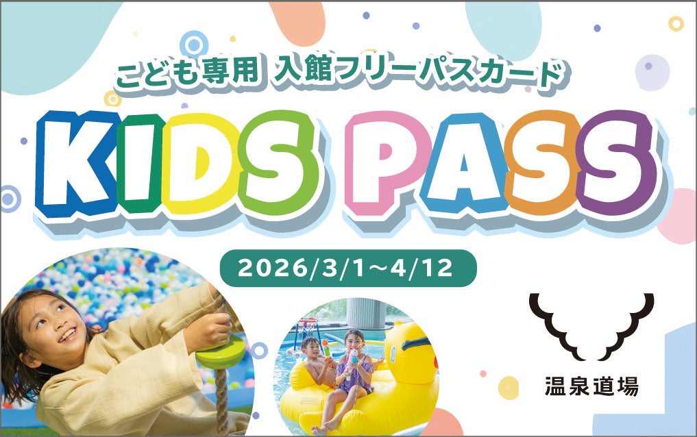 株式会社温泉道場(埼玉県比企郡ときがわ町、代表取締役 山崎寿樹)は、2026年2月14日(土)より、小学生以下のお子さまを対象に、温浴施設6店舗が期間中何度でも入館し放題になる「キッズパス2026春」を販売いたします。