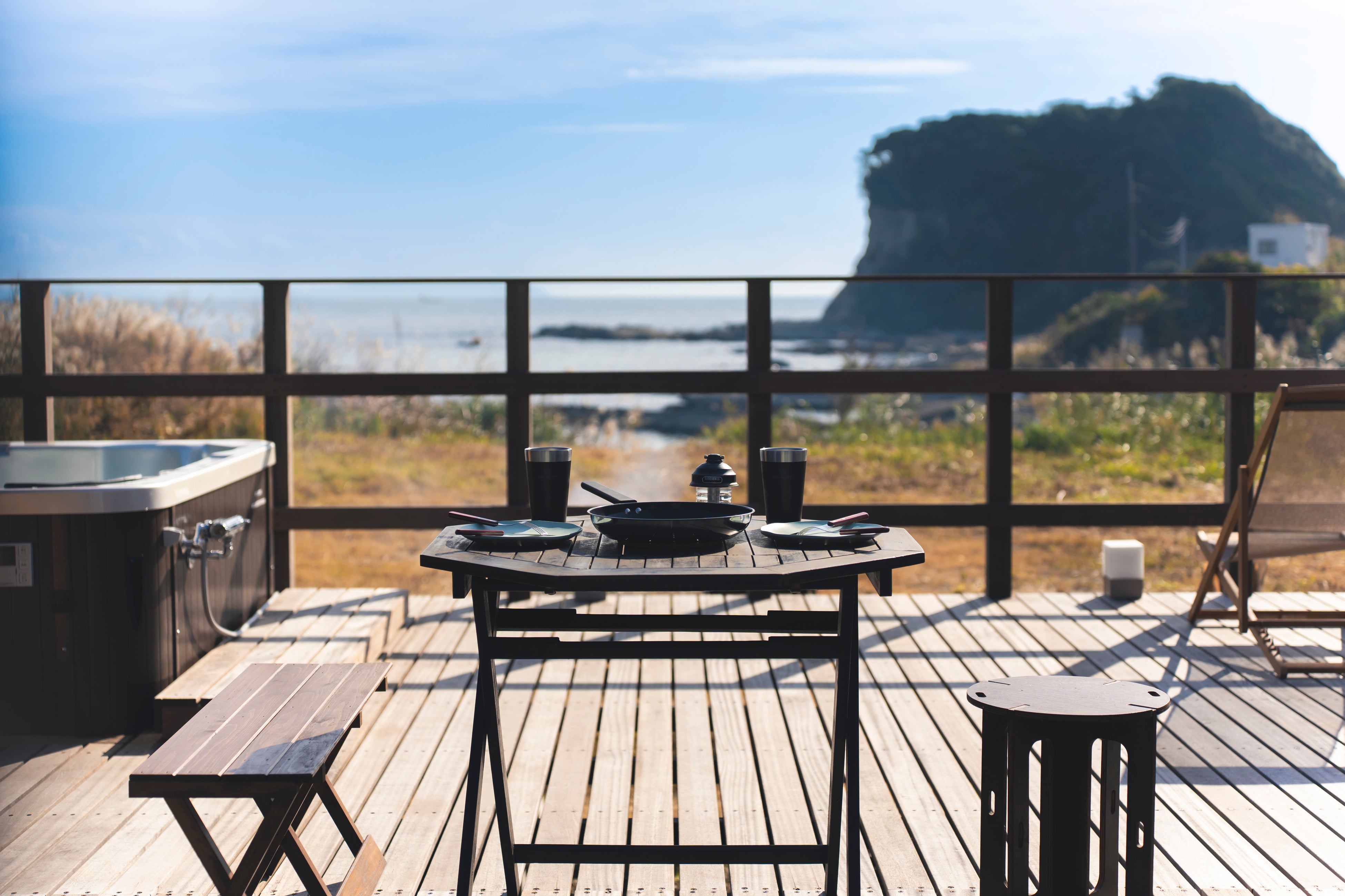 プライベートサウナに隣接して、全棟に温水ジャグジーをご用意。目の前に広がるオーシャンビューを眺めながら湯に身を委ねるひとときは、まるで海外リゾートのような非日常感を演出します。夏は海風を感じながらリゾート気分を満喫し、冬は温かな湯に包まれながら星空と波音に癒される贅沢な時間を。