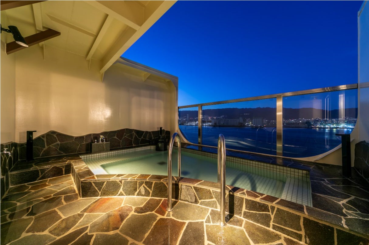 船内には大浴場のほかに、露天風呂も完備。瀬戸内の満点の星空やライトアップされた橋・街並みの夜景と海上の風を感じる露天風呂もお楽しみいただけます。