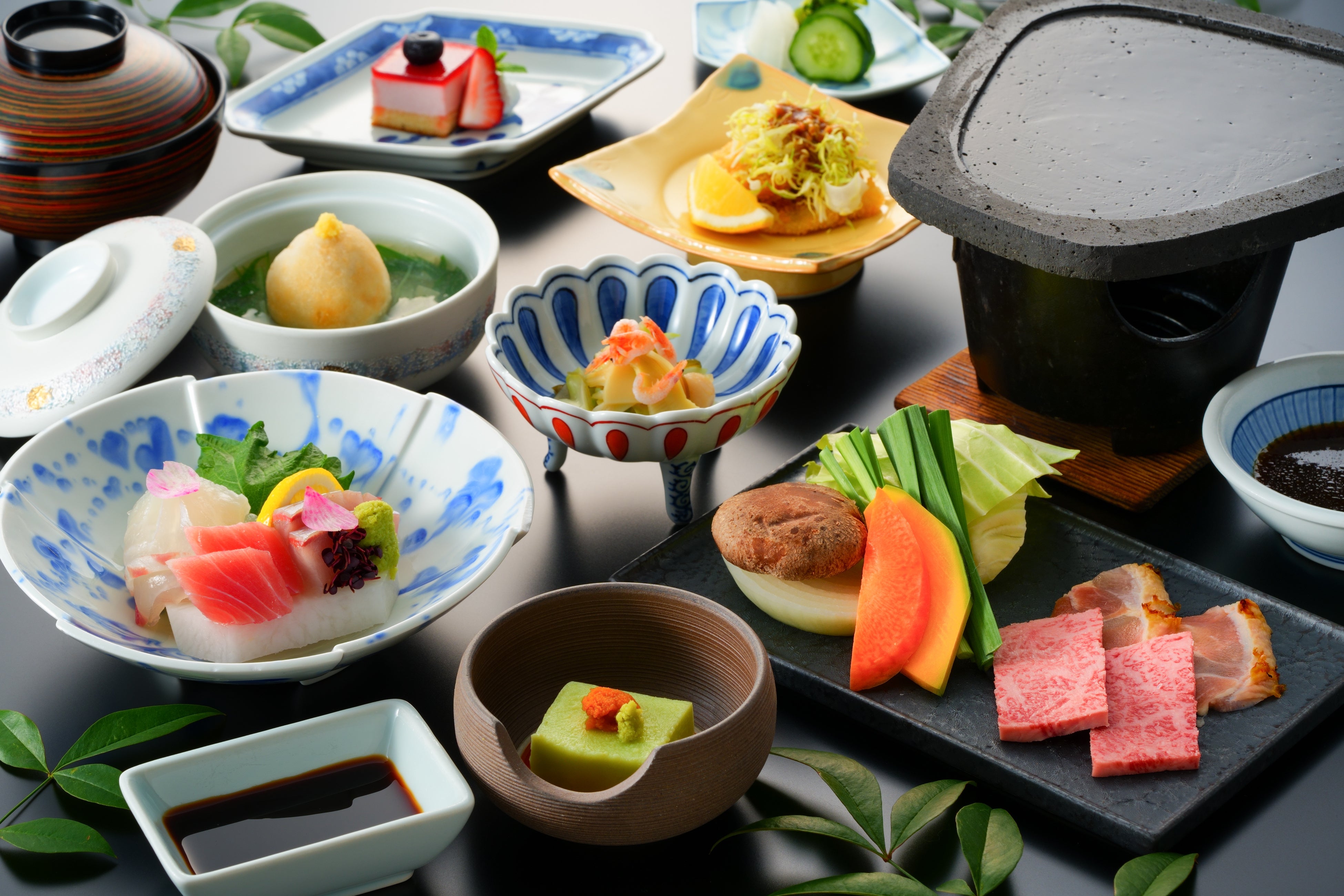 ご夕食には九州産黒毛和牛の会席料理をご賞味ください!