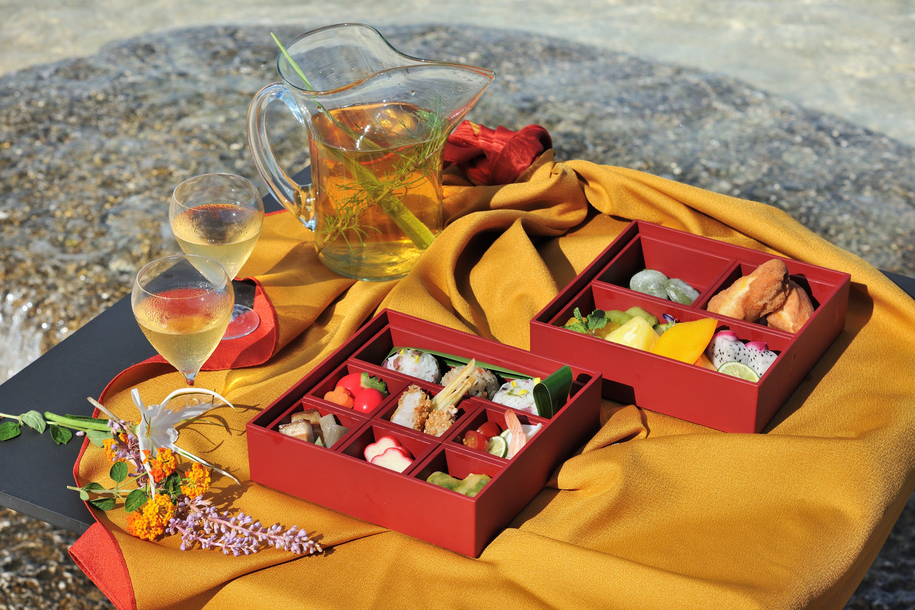 琉球王朝時代より旧暦と共にある沖縄の年中行事の一つ「はまうり(*3)」は、女性たちの無病息災と幸せを願い海水で心身を清める祭祀で、旧暦の3月3日にあたります。行事のあとに浜で食事をしていたことにちなんで、星のや沖縄のシェフが沖縄伝統の「三月御重(さんぐゎち うじゅー)」を華やかに仕立てました。施設前に広がる自然海岸にて、爽やかな朝を過ごすことができます。