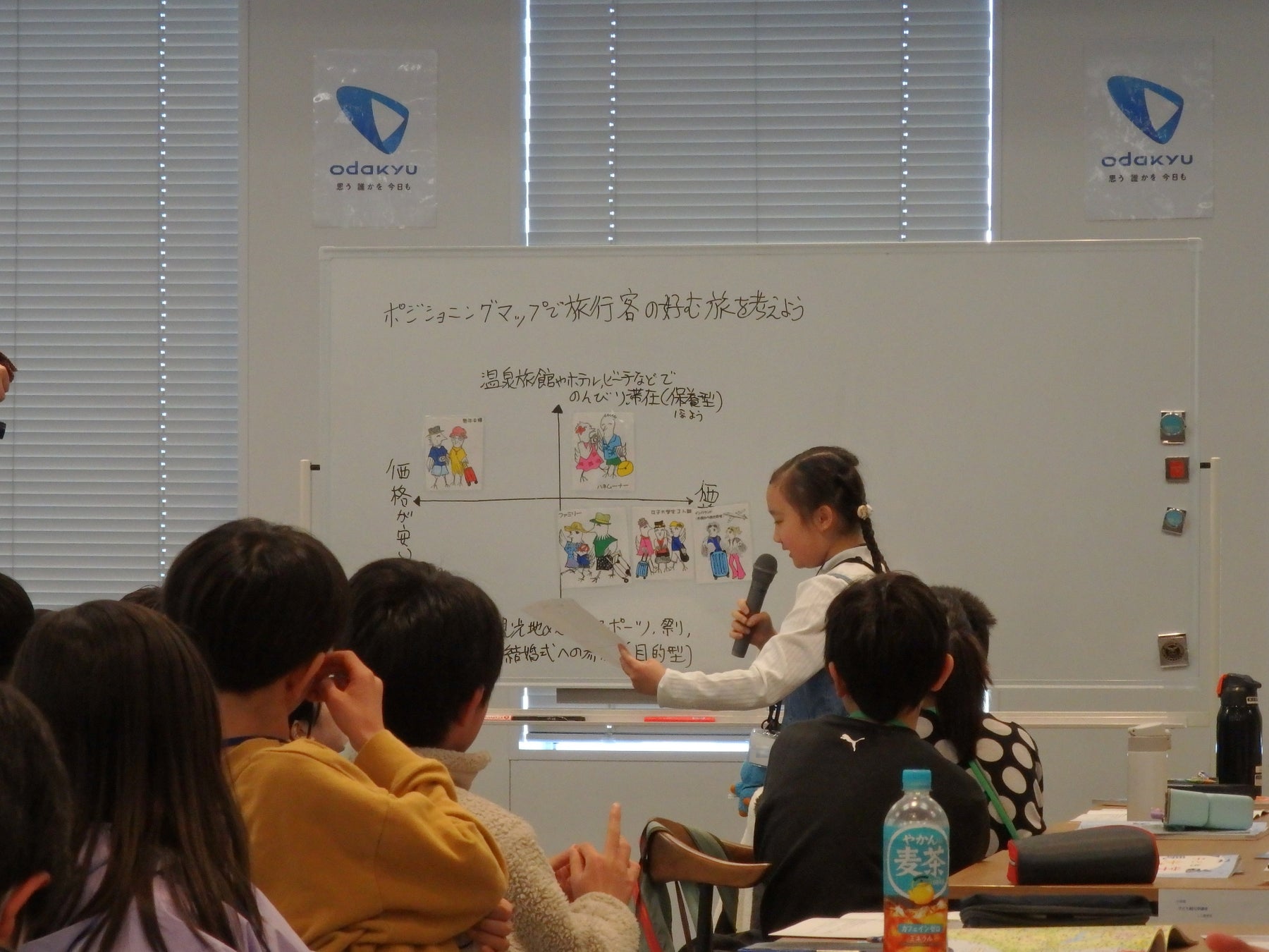 当日は、小学3~6年生の児童28名が参加し、3つの講座の受講とロマンスカーミュージアムの見学を行いました。参加した子どもたちからは「小田急沿線の観光スポットについて知ることができ勉強になった」、「顔ハメボードでの発表が楽しかった」といった感想があり、子どもたちの様子を見学していた保護者からも今回の講座について高い評価をいただきました。