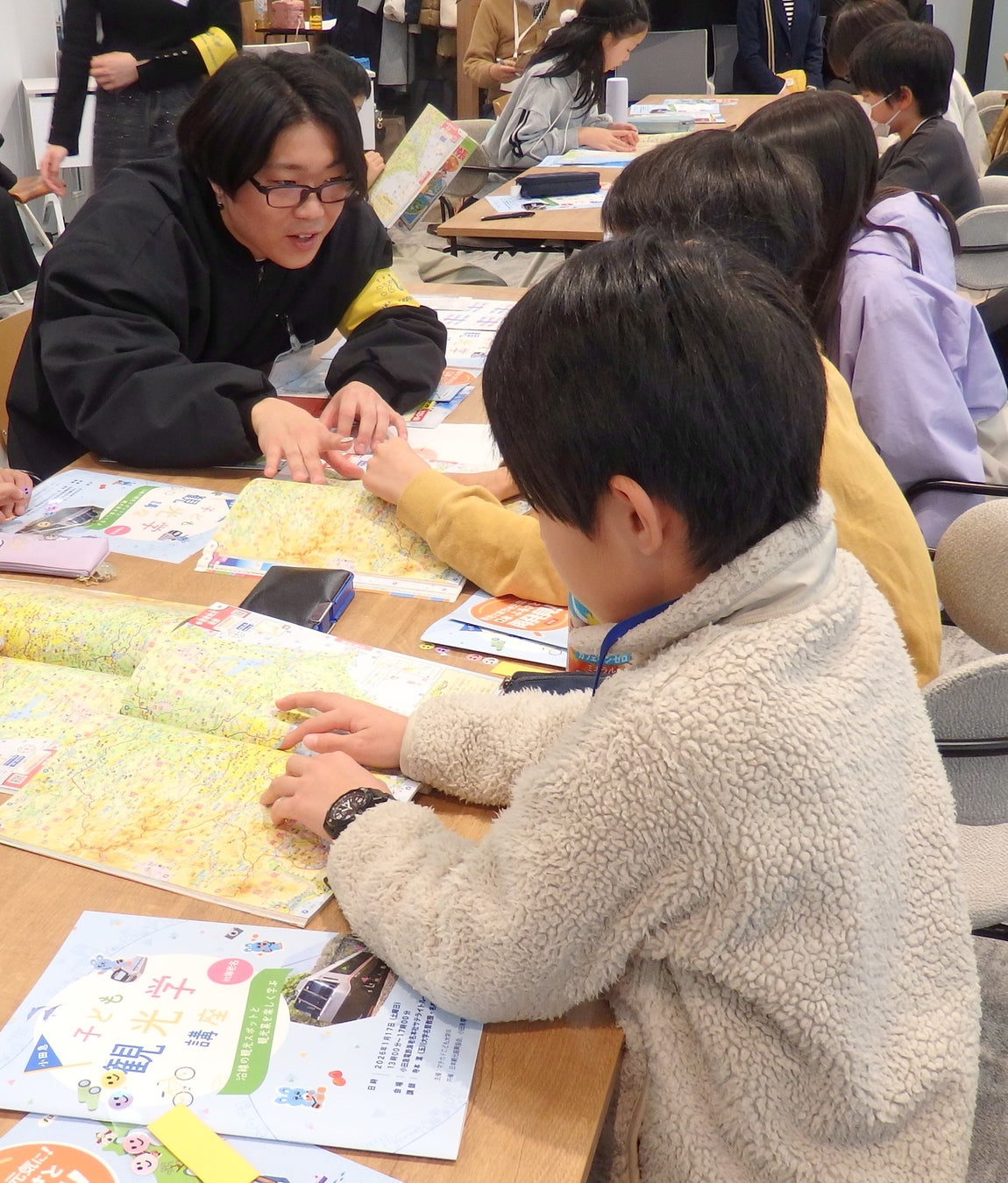 人差し指を地図帳に沿わせ、小田急沿線上をなぞりながら沿線の観光スポットや資源を確認するなど、まるで地図の上で旅行しているかのように動かす「観光読み」に取り組みました。