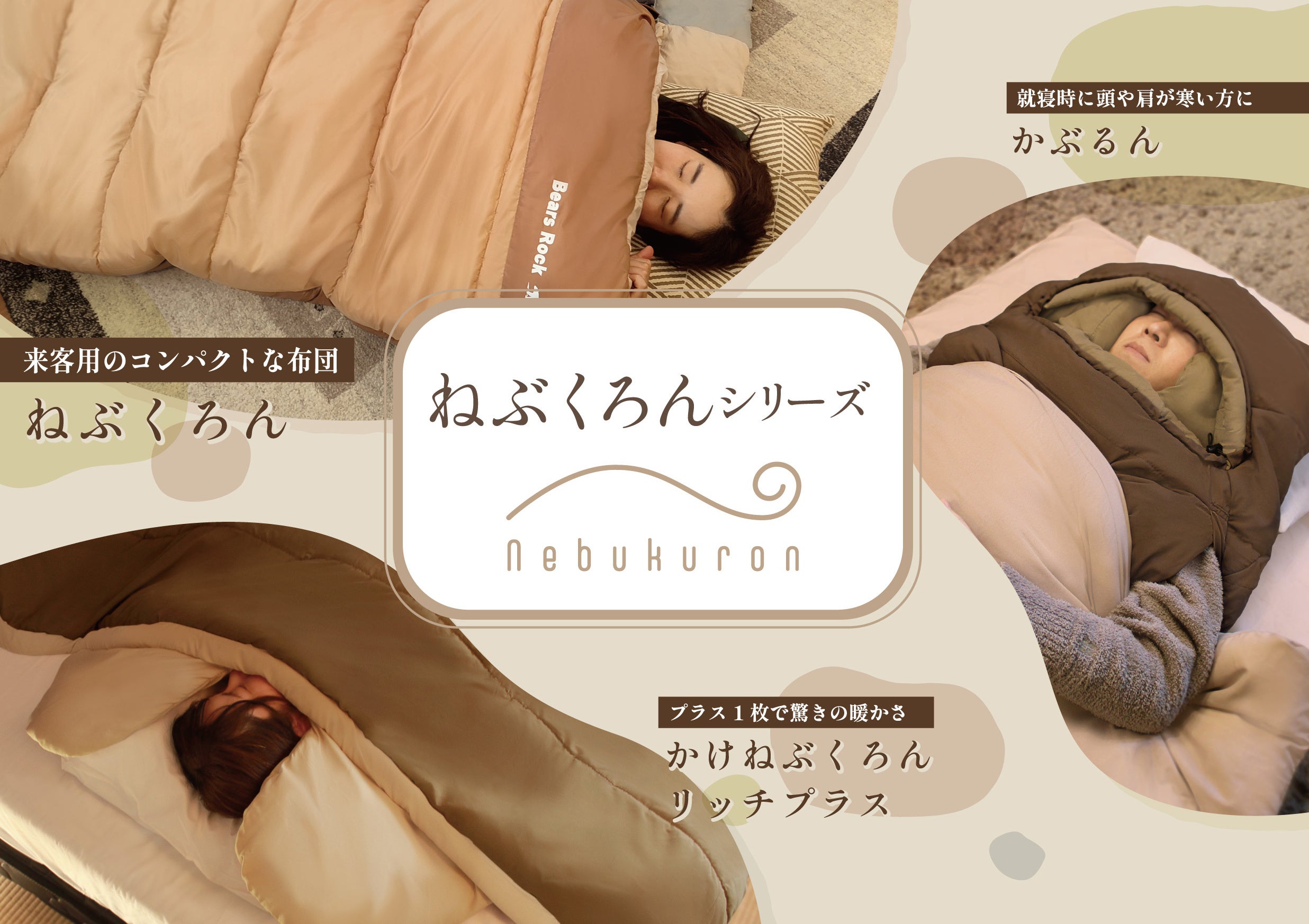 私たちBears Rockは様々なあったか寝具「ねぶくろんシリーズ」を開発しております。