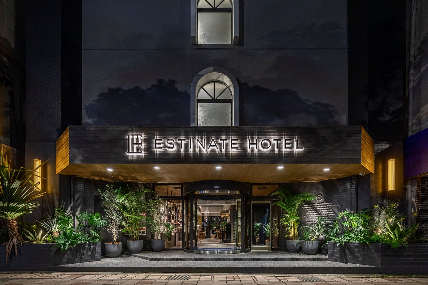 旅人とローカルが集うライフスタイルホテル。旅の行き先で必ず滞在するホテル。ESTINATE HOTEL 那覇は単なる目的地としての滞在場所ではなく、宿泊ゲスト、立ち寄るローカルなどホテルにアクセスする人々との情報交換によって新たな旅の行き先が決まる場所。ESTINATE という名称は「目的地―DESTINATION―」から頭文字の D をはずした ESTINATION という造語を動詞に派生させて生まれました。不完全な旅の中にこそ様々な「次」が見える、そんな発見にあふれたホテルでありたいというコンセプトを DESTINATION から D を外すことで「不完全さ」を、そしてアルファベットで D の「次」に来る E が新たに頭文字として顔をだすことで「“次の発見”」を表現しました。