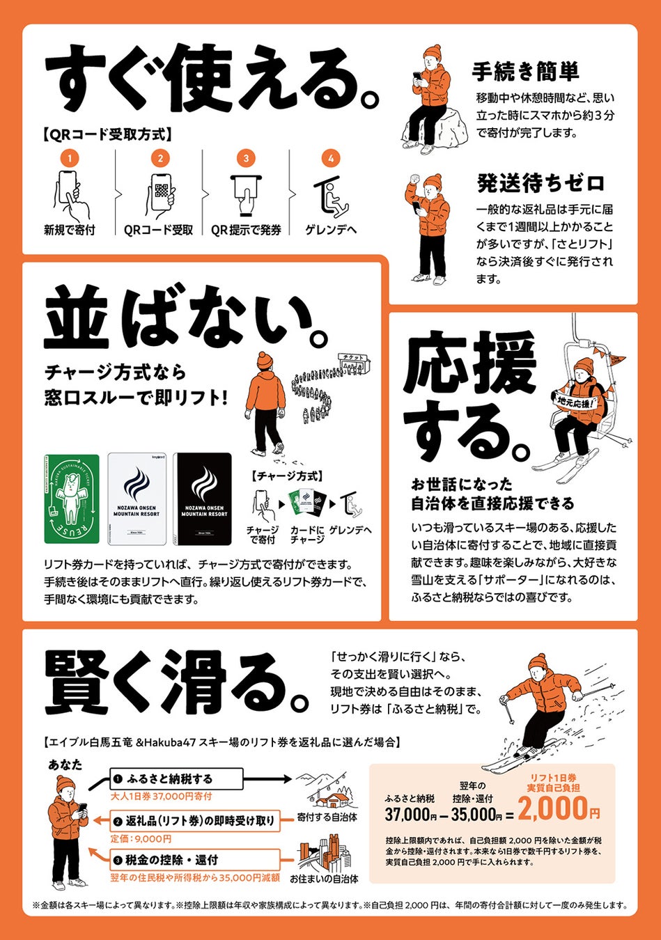 即時取得と当日利用: スキー場に着いてから寄付をしても、その場でリフト券を受け取り、当日の利用に使えます。