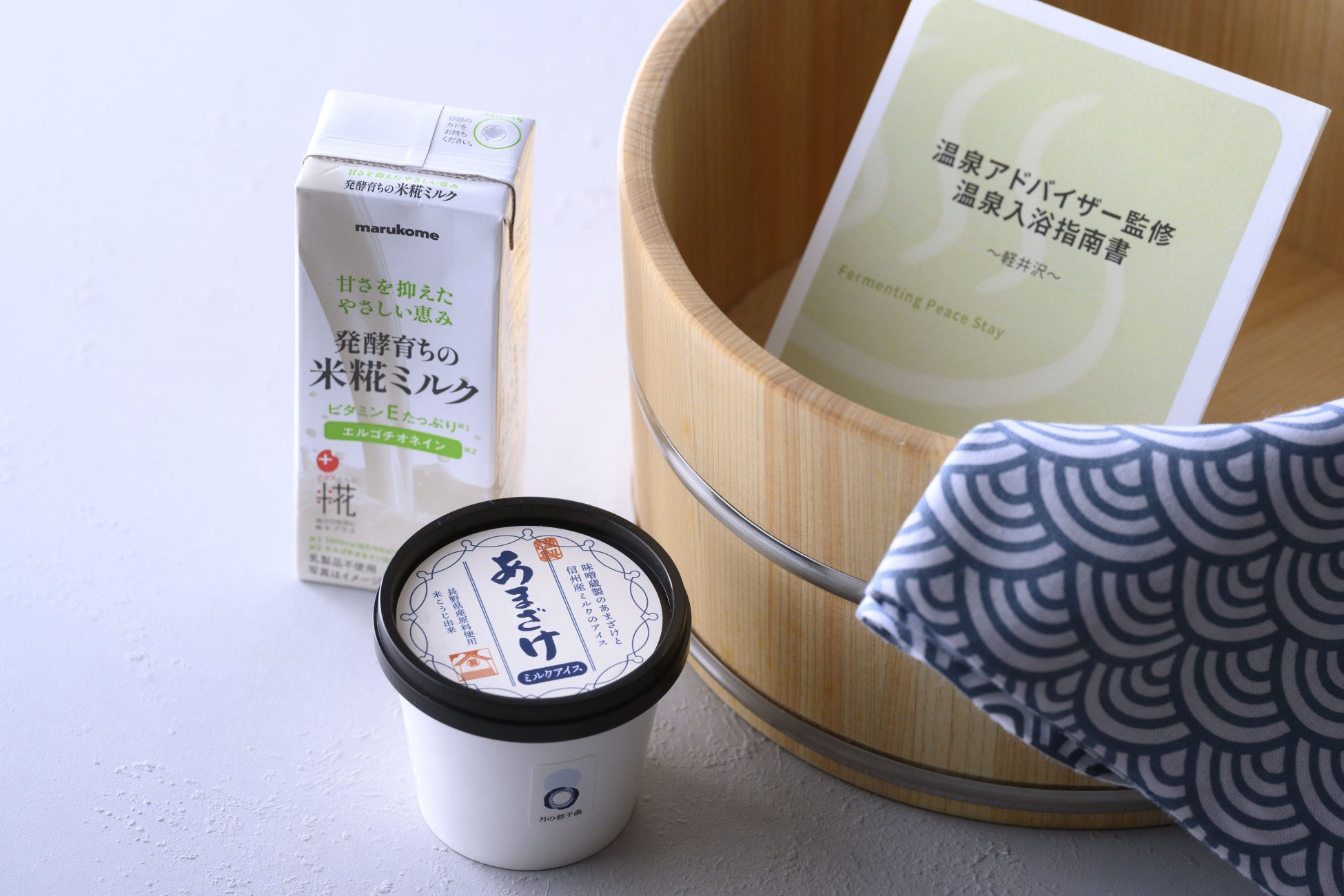 湯上りには、信州 味噌蔵たかむらの「あまざけミルクアイス」と、マルコメ株式会社「プラス糀 米糀ミルク」をご用意しております。