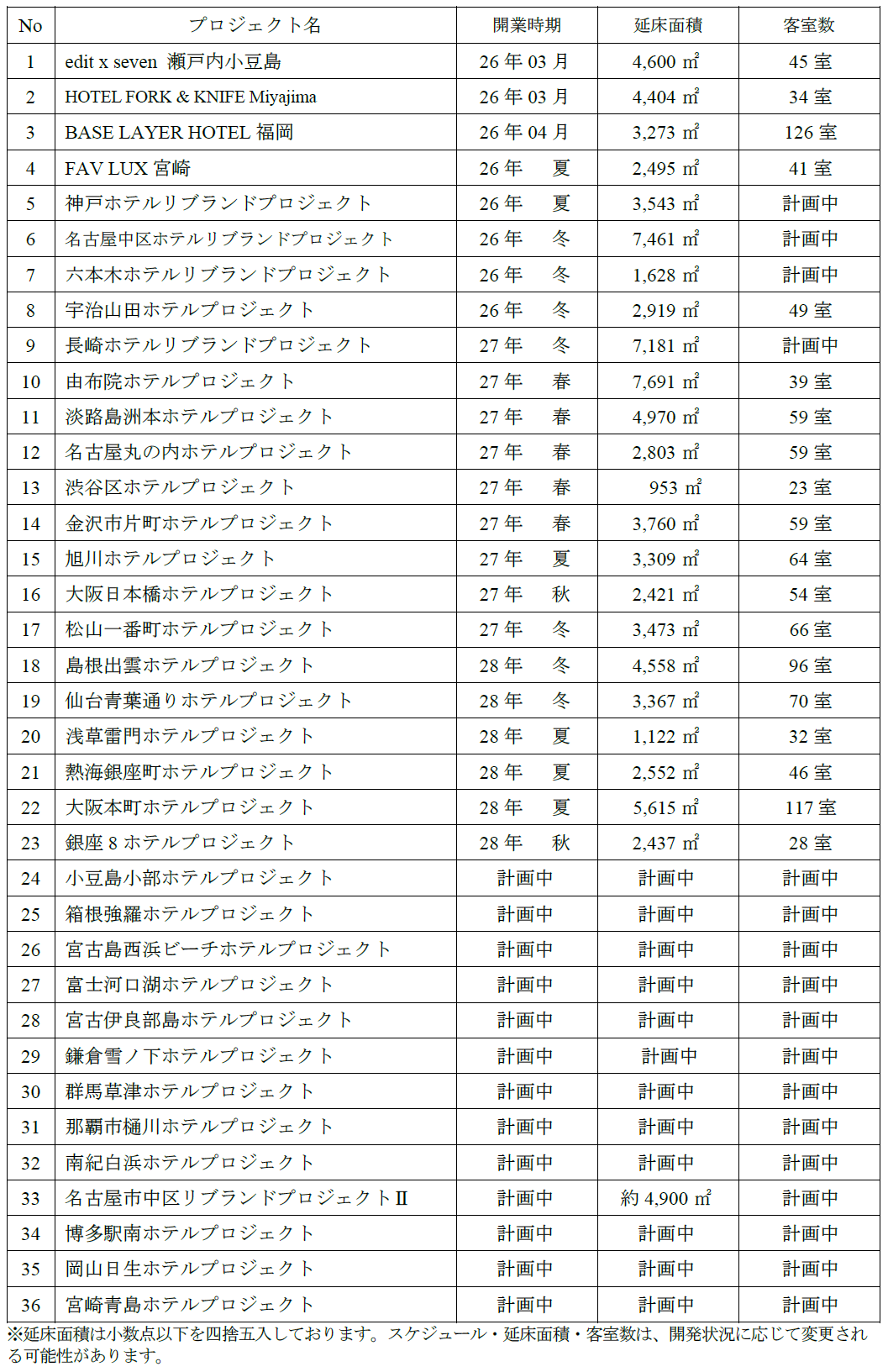 ■ホテル開発予定案件一覧