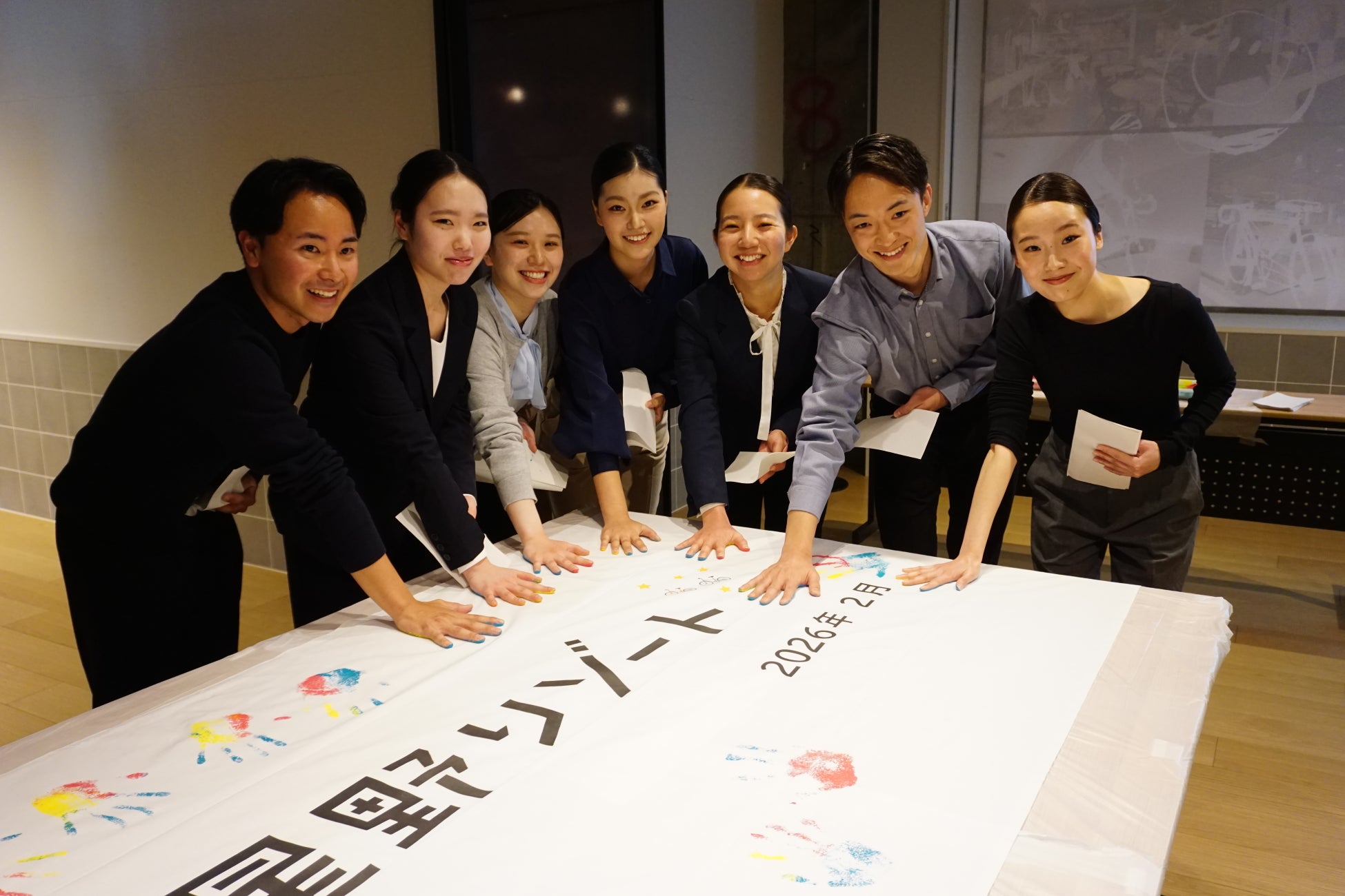 「旅を楽しくする」をテーマに国内外で75施設を運営する星野リゾートは、2026年2月4日に入社式を実施しました。この冬には、21名の新入社員を迎え、茨城県にある「BEB5土浦 by 星野リゾート(ベブ)」で、新入社員研修「Warm-up Camp」と入社式「契りの会」を行いました。研修期間では、ホテル運営や組織の価値観を学び、最終日に行われた入社式では、これから働く決意を込めて、手のひらに絵の具をひたし、手形を押す「契りの手形」を結びました。この後、全国各地の施設に着任します。
