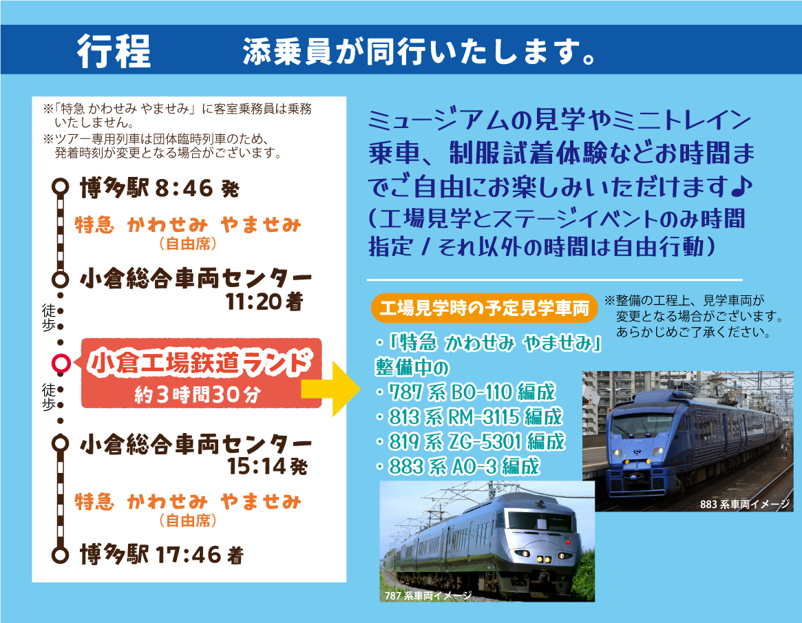 1.博多駅発着!「特急 かわせみ やませみ」特別運行 小倉工場鉄道ランド特別ツアー