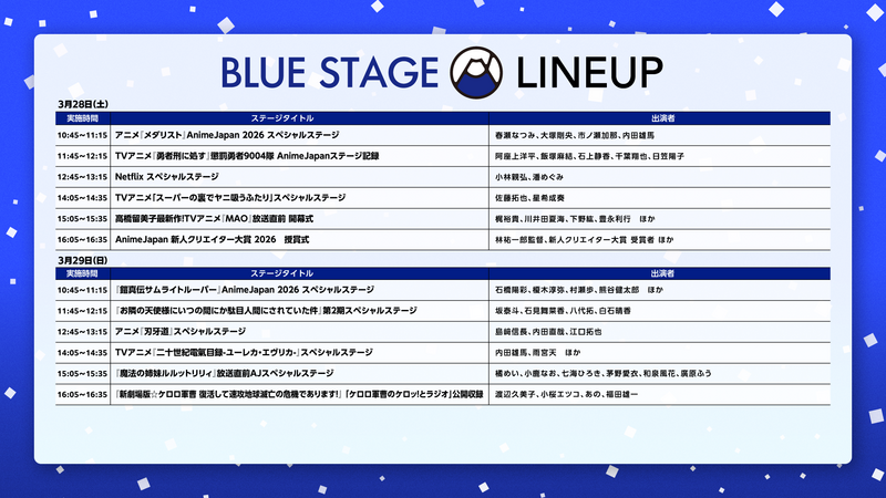 世界最大級のアニメイベント「AnimeJapan 2026」が2026年3月28日(土)、29日(日)に東京ビッグサイトにて開催いたします。